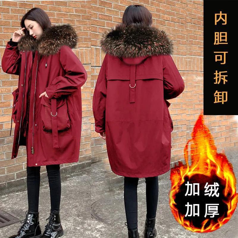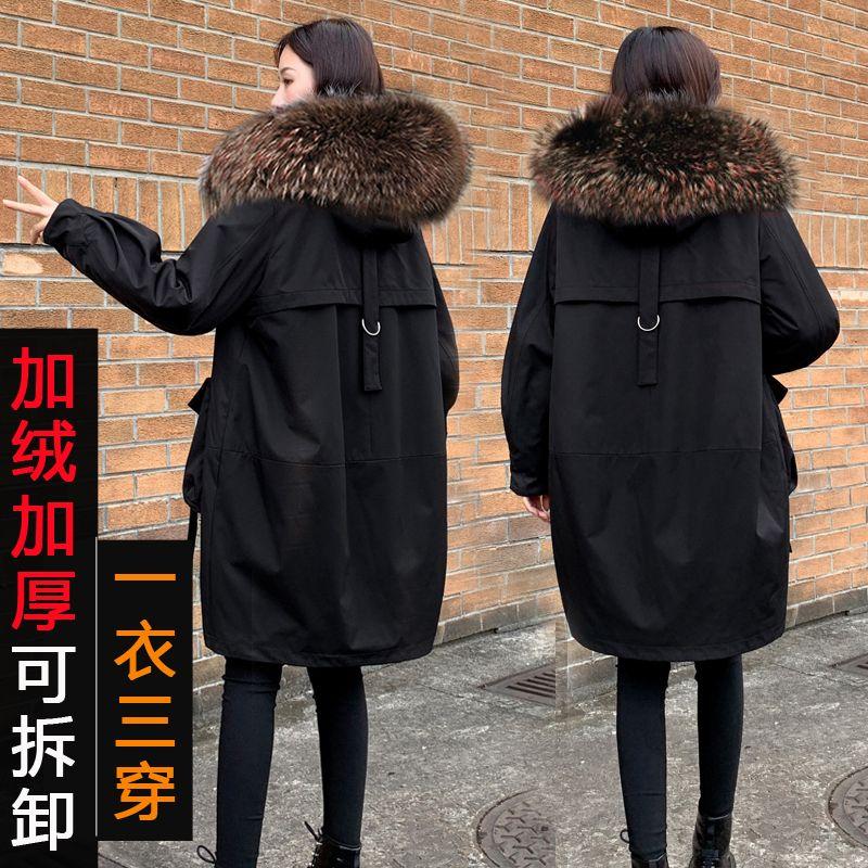 冬季2025新款大衣休闲洋气派克服女皮草外套中长款宽松可拆卸内胆