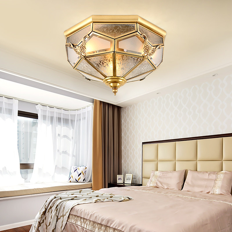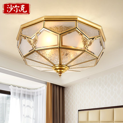 led欧式全铜吸顶灯温馨卧室灯美式简约大气书房过道房间圆形灯具