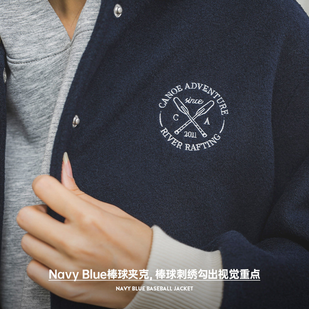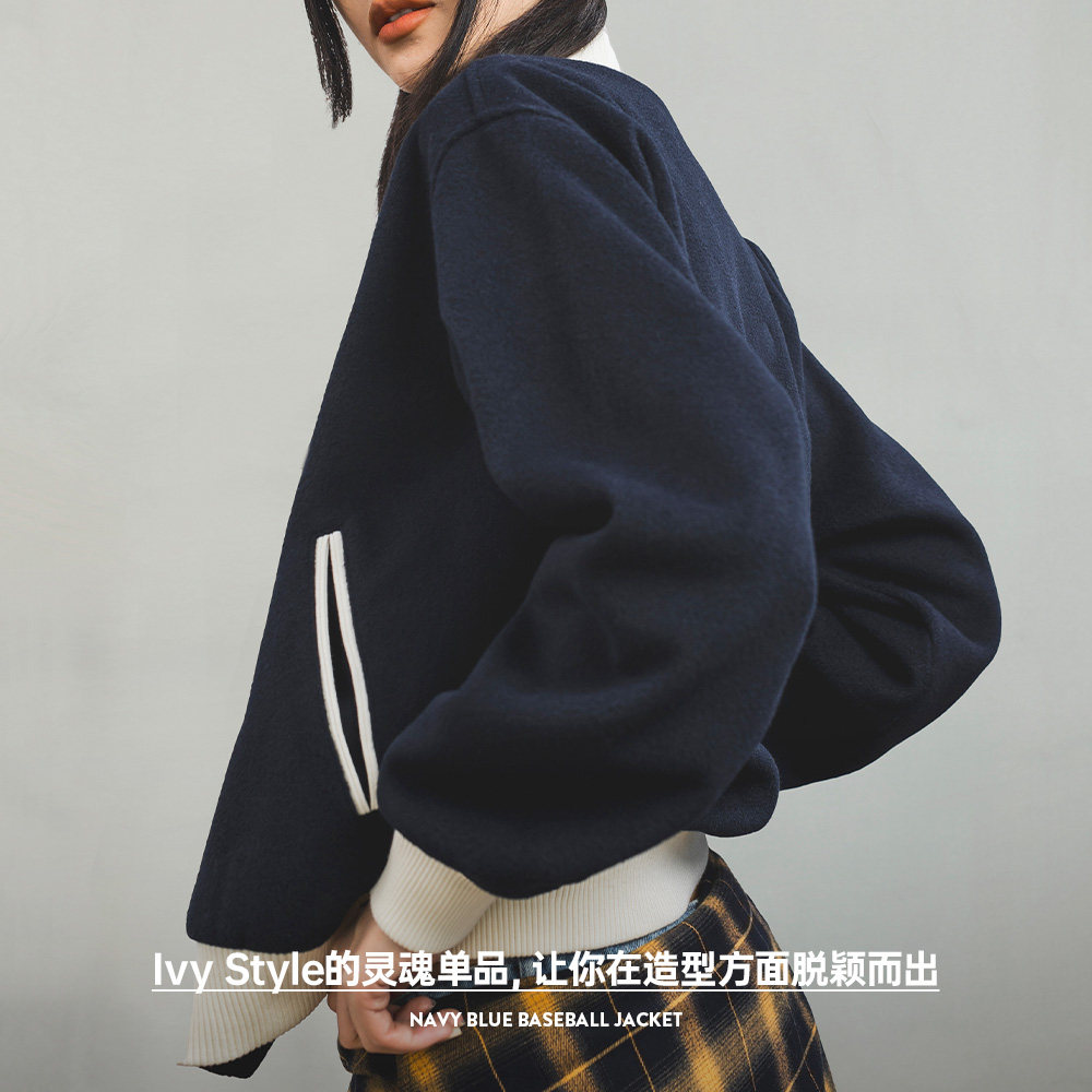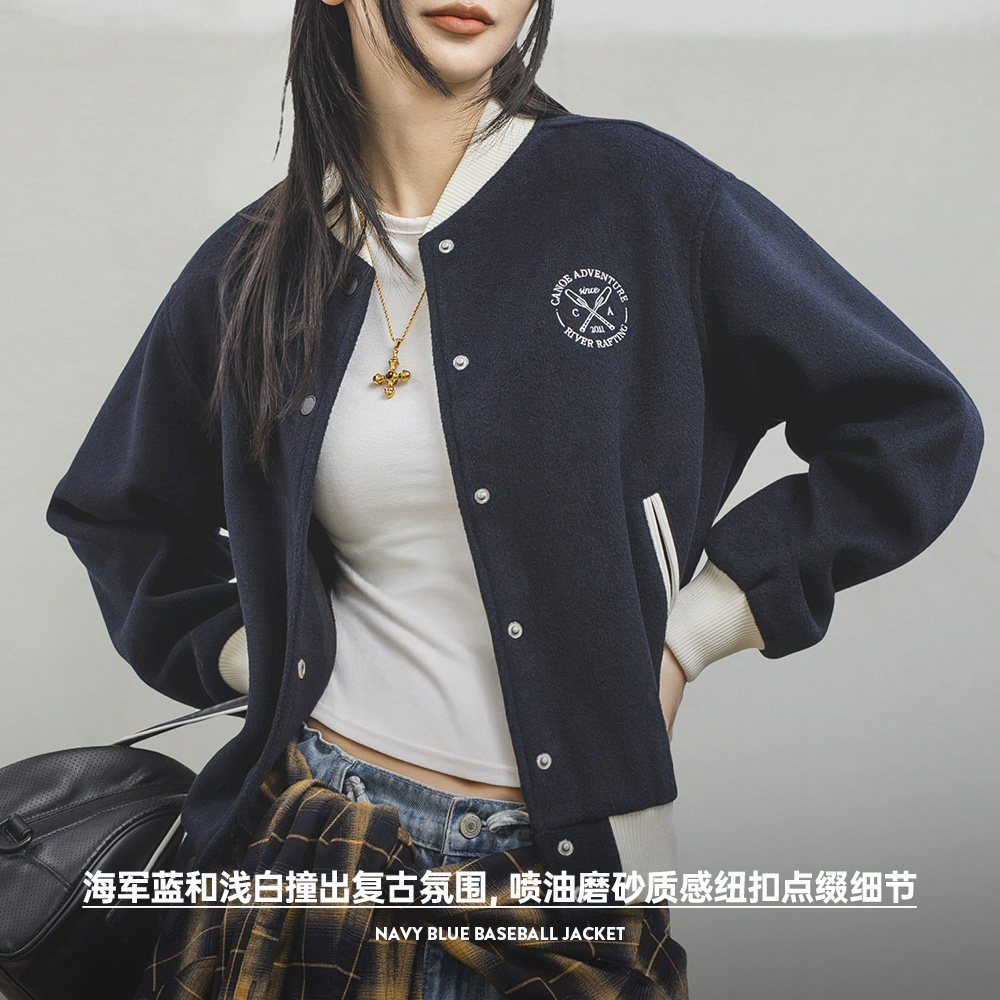 马登美式学院风棒球服夹克复古撞色刺绣外套百搭毛呢短上衣秋季女
