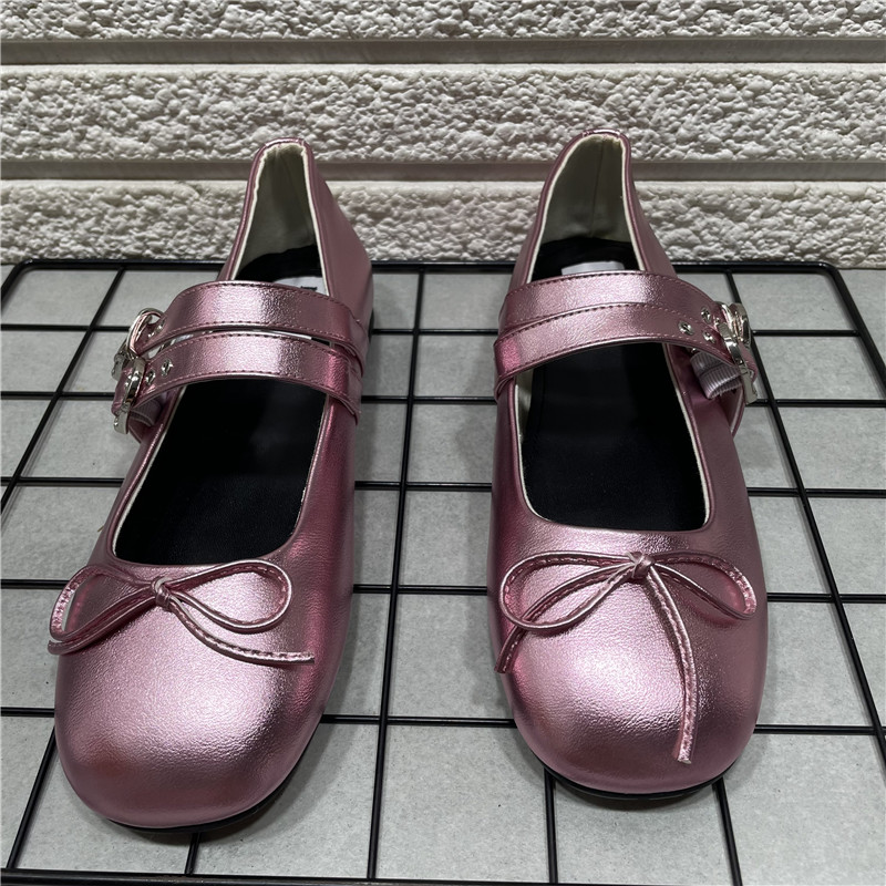 蝴蝶结平底芭蕾风玛丽珍鞋女