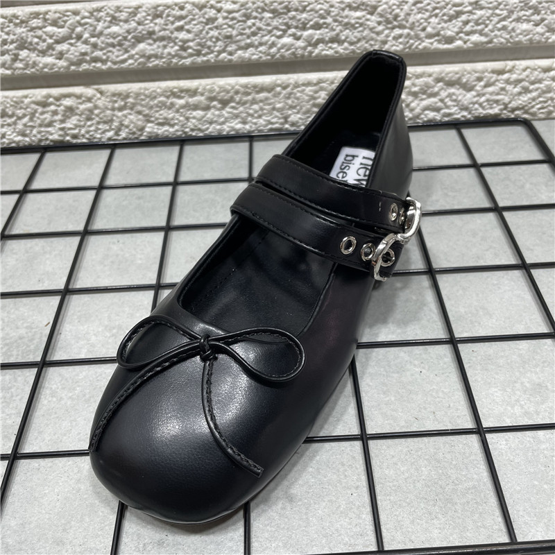 断码处理女鞋蝴蝶结平底芭蕾风玛丽珍鞋女方头浅口一字双带扣单鞋