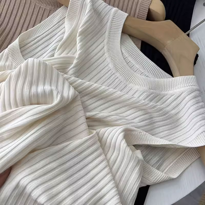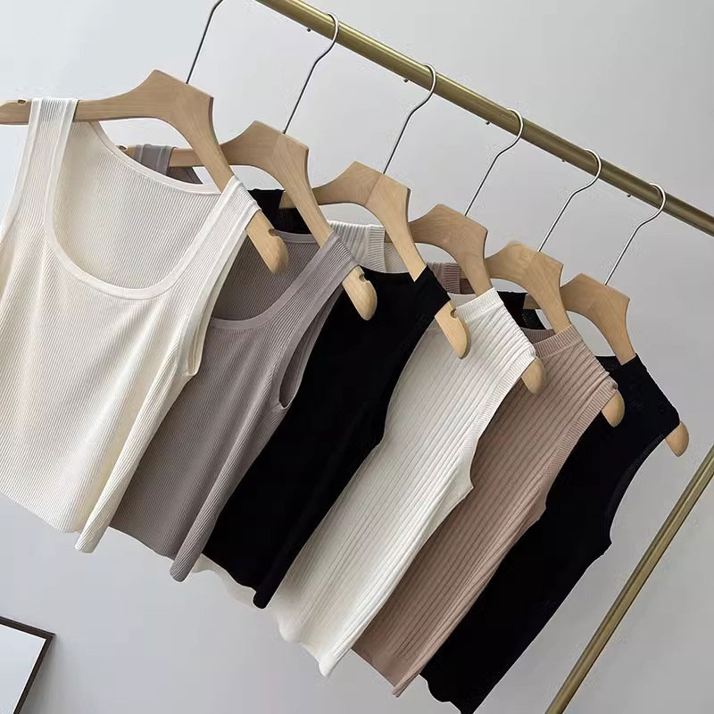时髦星人~北欧极简针织背心显瘦天丝亚麻无袖工字U领女吊带打底衫
