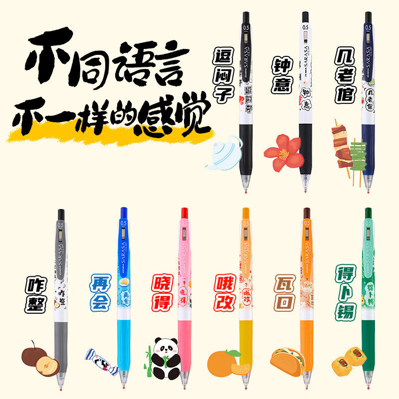 日本ZEBRA斑马中性笔JJ15语言限定SARASA方言黑色水笔红蓝子弹头按动式大容量学生做笔记彩色笔