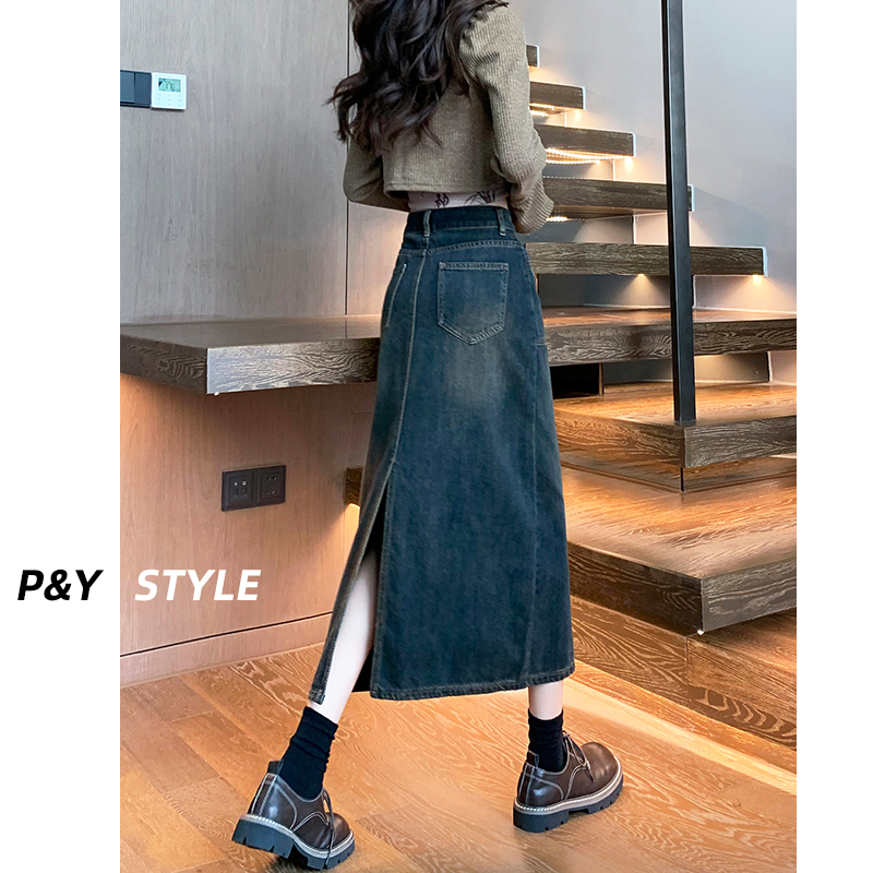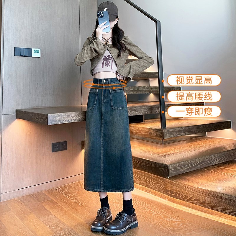 高腰牛仔半身裙女2025年新款夏季a字包臀半裙复古气质显瘦中长裙
