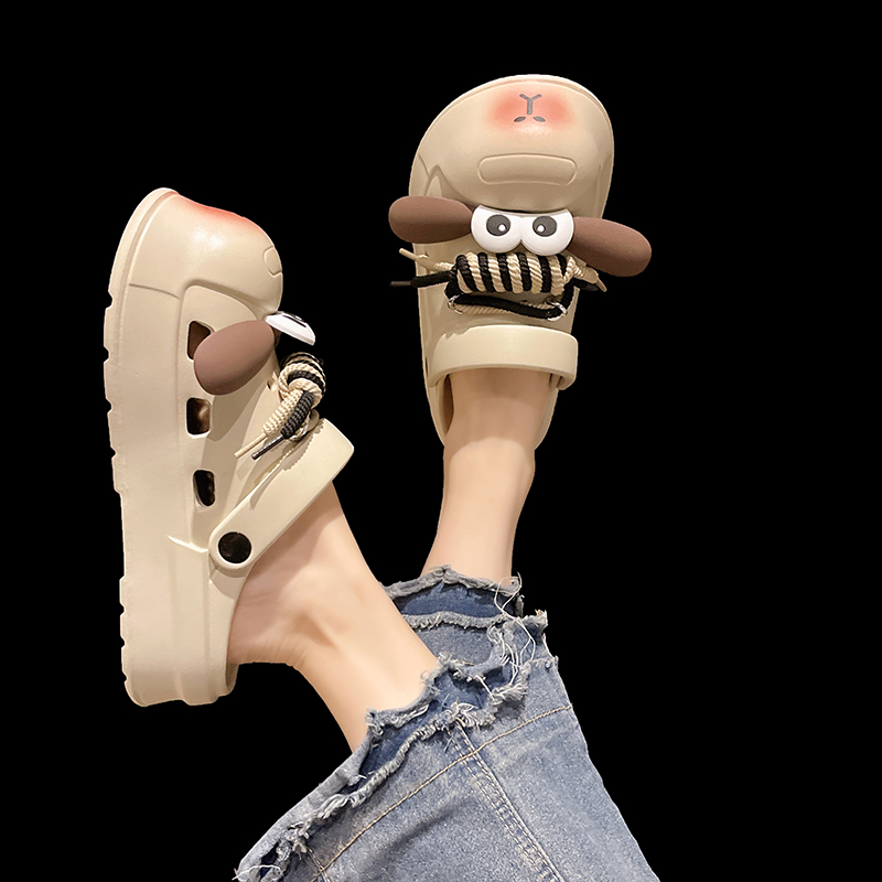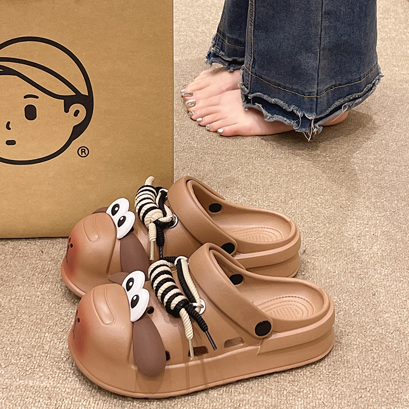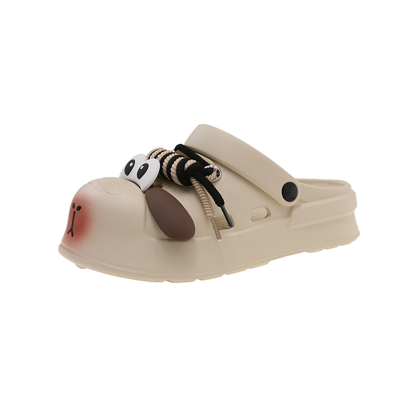 卡通可爱小狗洞洞鞋女夏季情侣室内外穿厚底防滑两穿包头凉拖鞋男