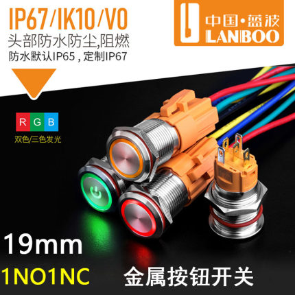 蓝波金属不锈钢按钮开关自锁自复位按键带灯启动19mm圆形