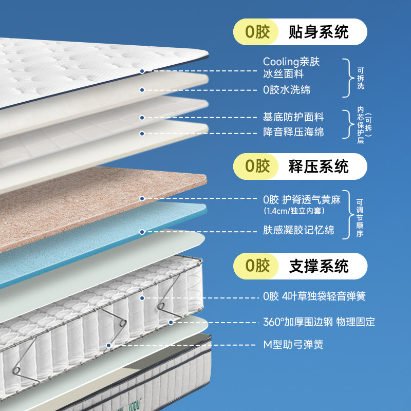 【有度0胶】雅兰黄麻床垫独袋弹簧可拆洗偏硬护脊床垫家用席梦思
