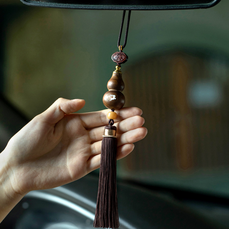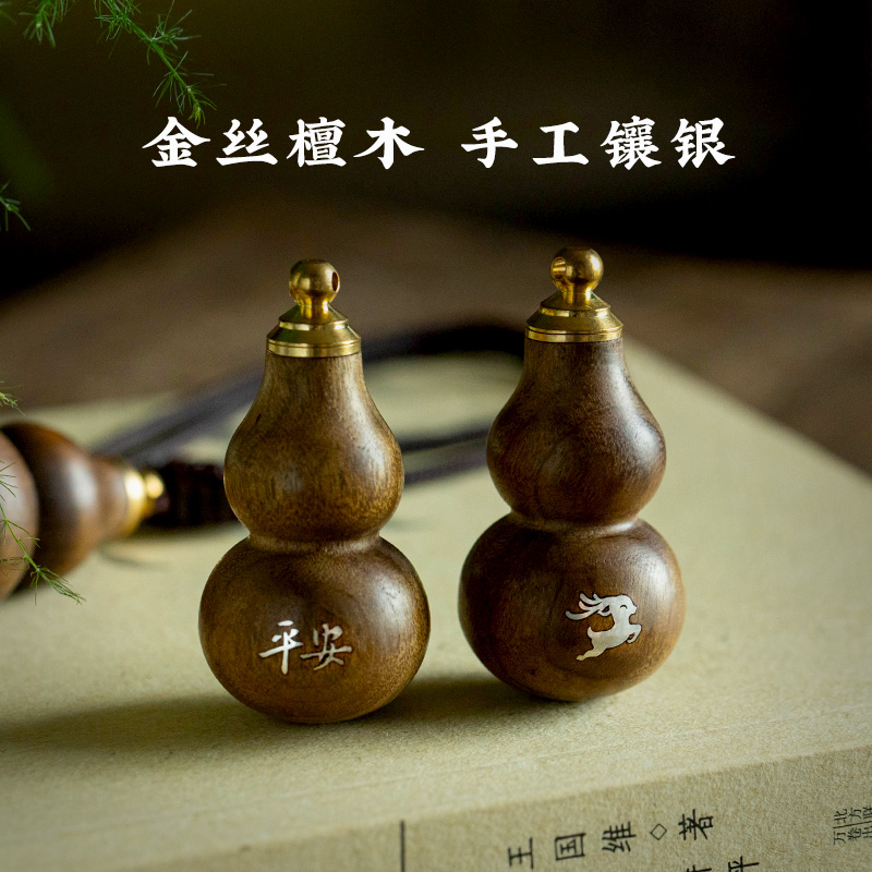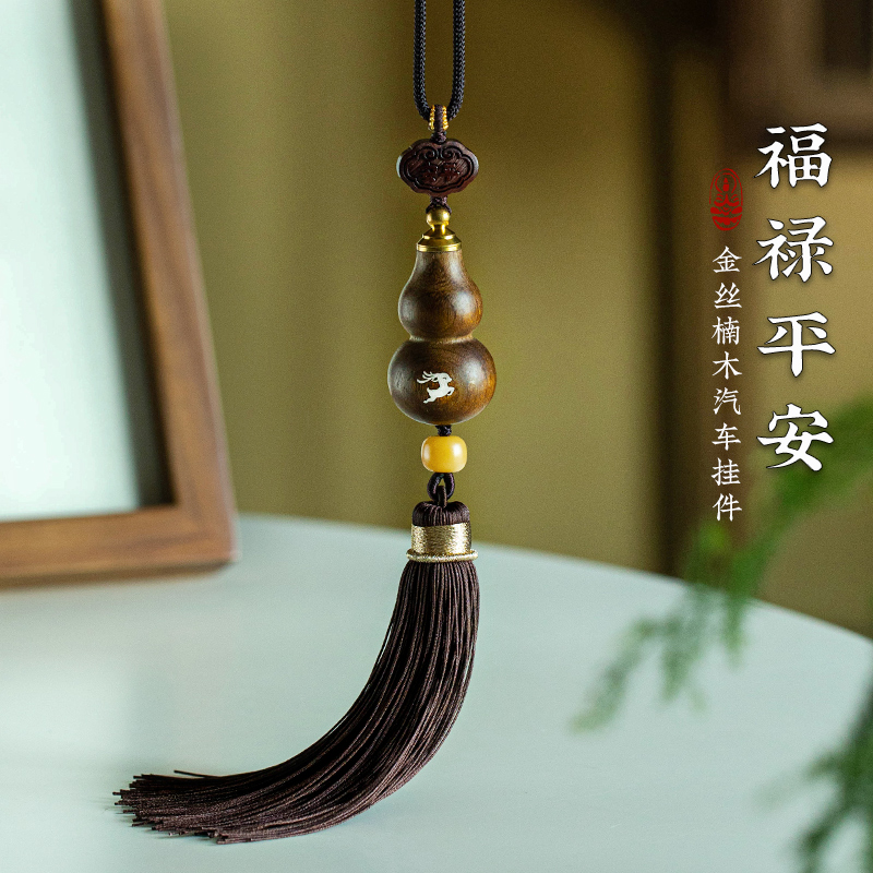 【福利特惠】金丝檀木福禄葫芦汽车挂件出入平安高档后视镜饰品