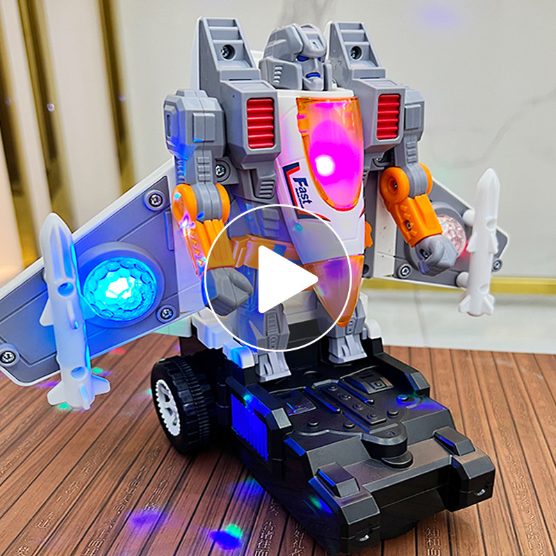 儿童电动变形机器人战斗机2一4岁3男孩6宝宝益智音乐直升飞机玩具