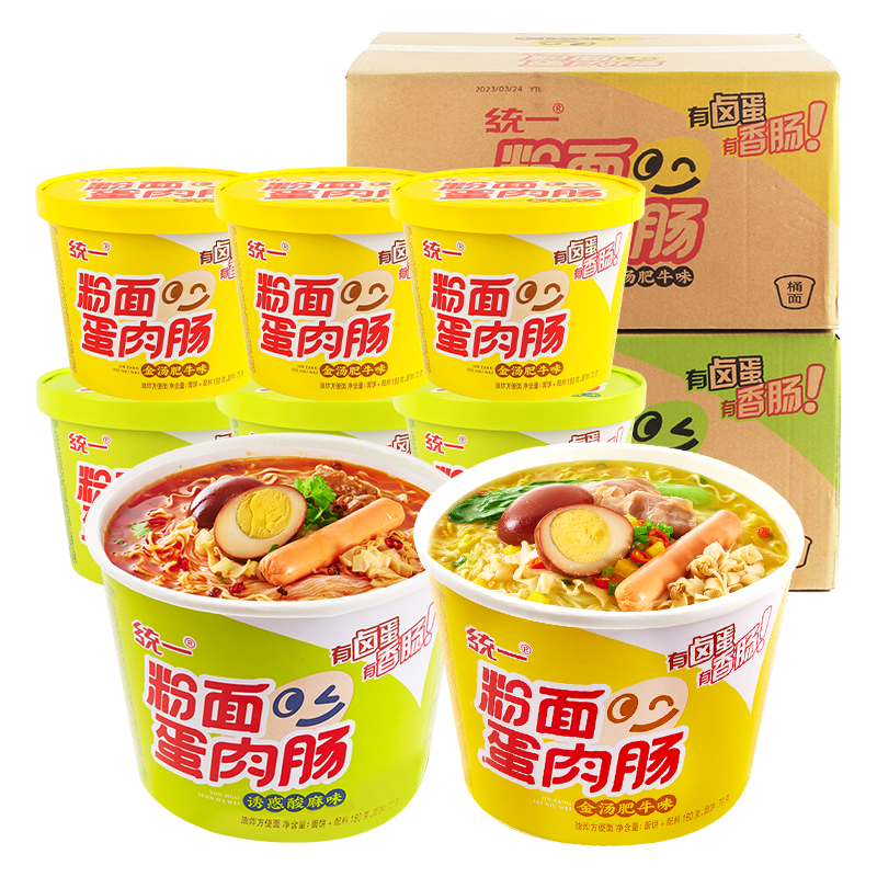 统一粉面蛋肉肠方便面整箱桶装粉面菜蛋金汤肥牛泡面
