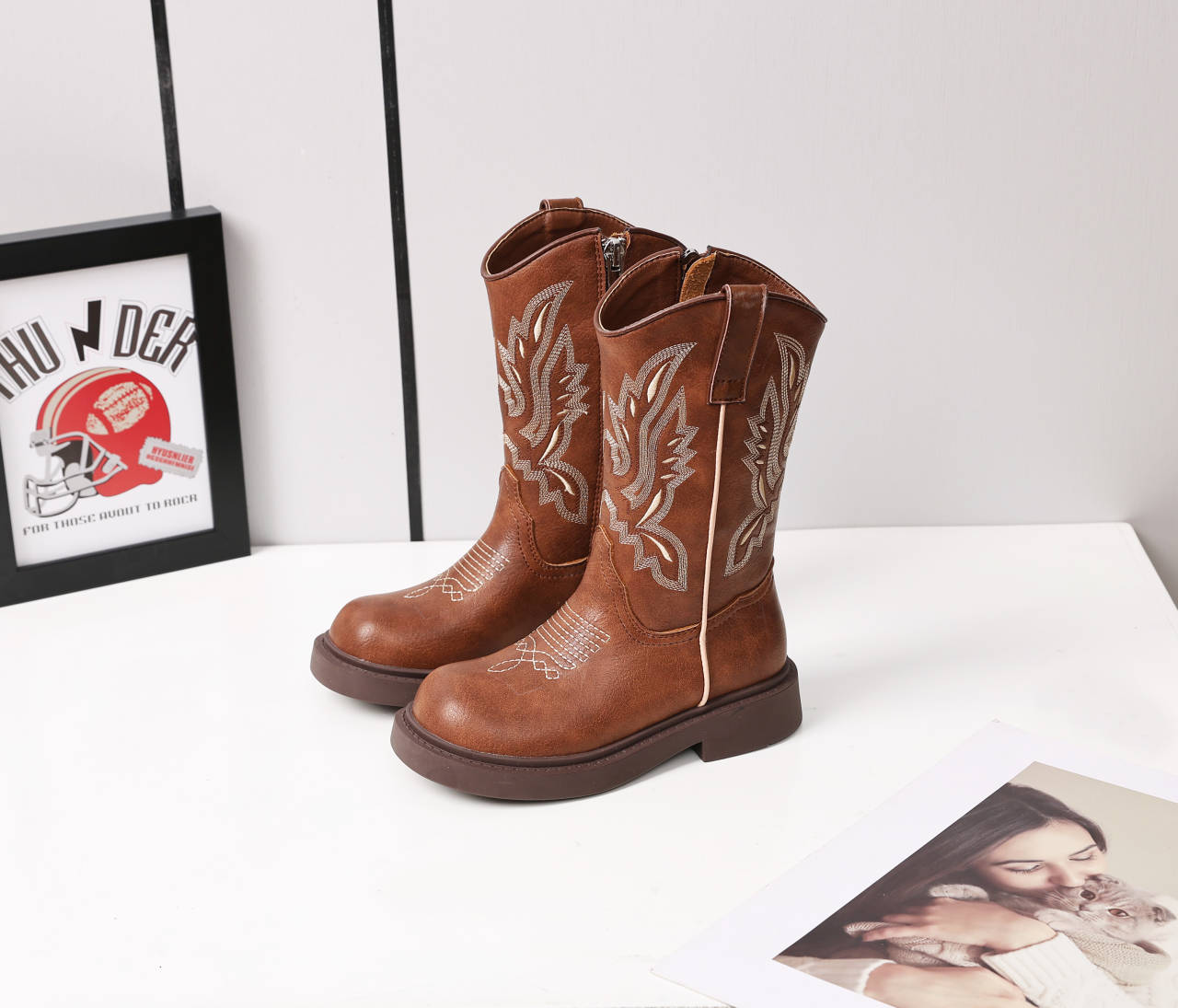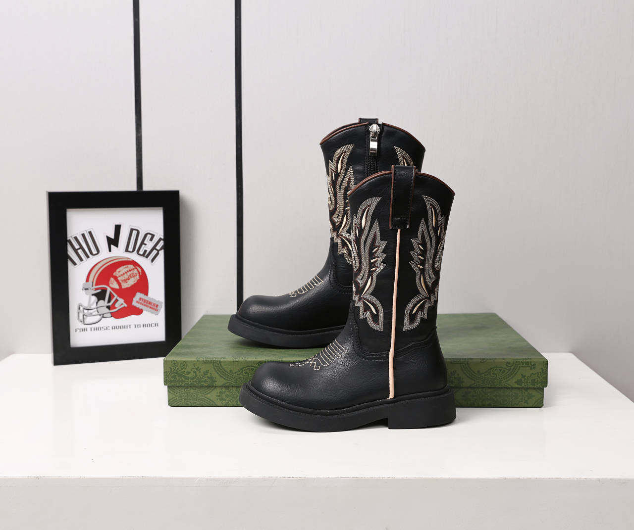 儿童马丁靴2025春季新款软底中筒切尔西靴女童潮酷复古刺绣牛仔靴
