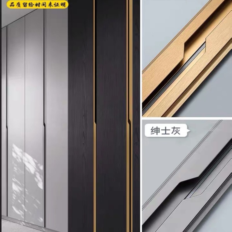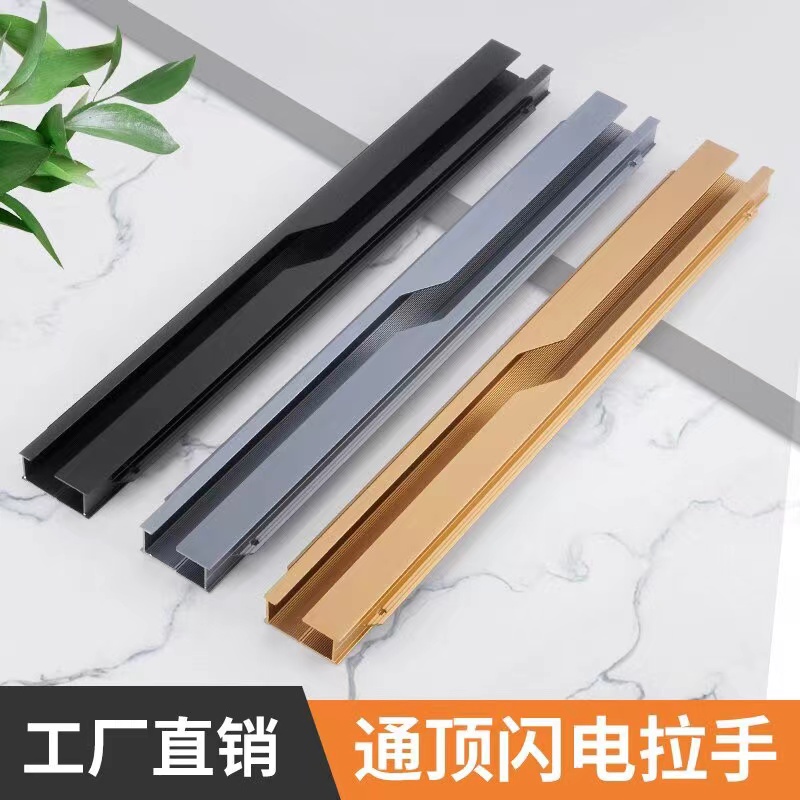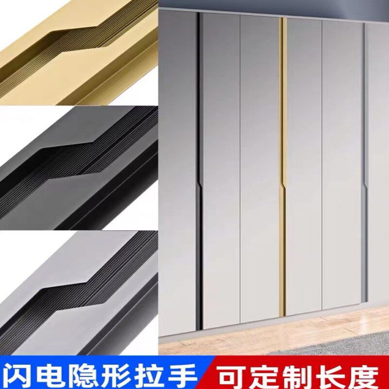 免开槽衣柜柜门黑色闪电拉手暗藏嵌入式隐形免打孔金色门把手手柄