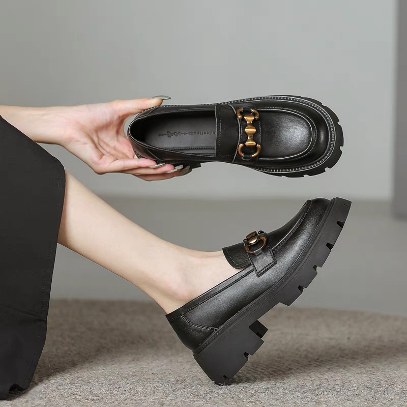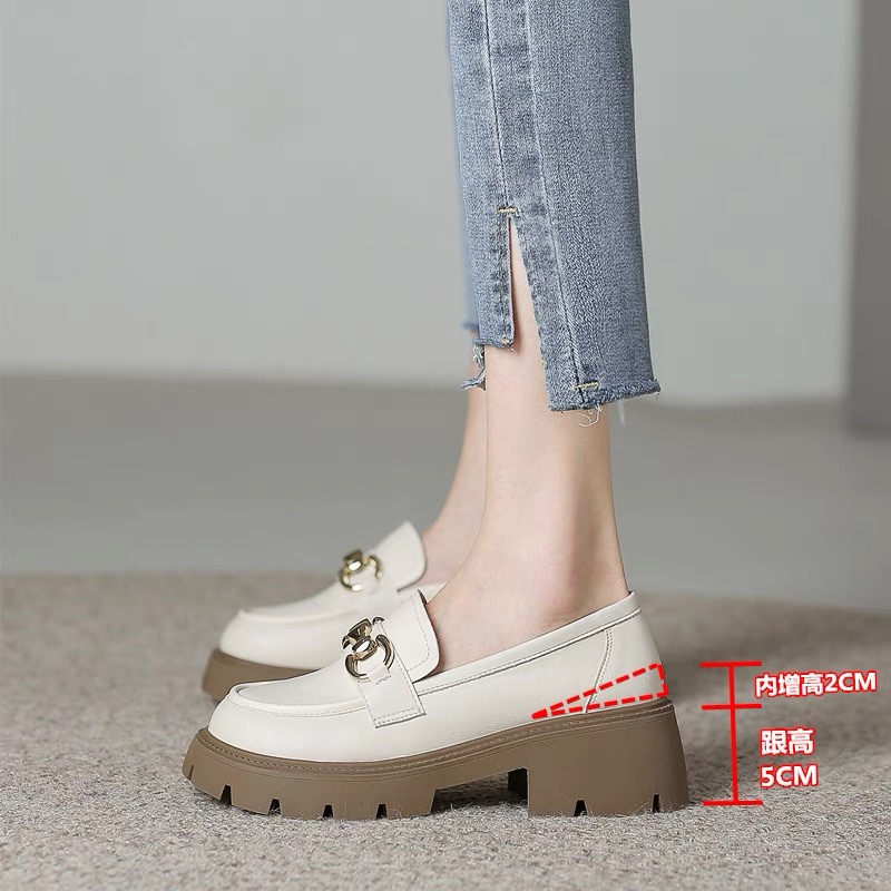 百丽班尼真皮英伦风小皮鞋女2025春秋新款复古增高百搭厚底乐福鞋