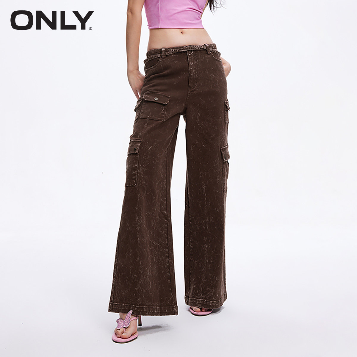 【ONLY奥莱】秋冬休闲通勤高腰不规则阔腿工装休闲裤女