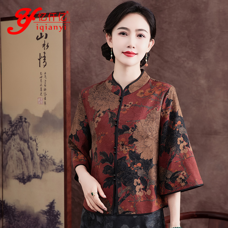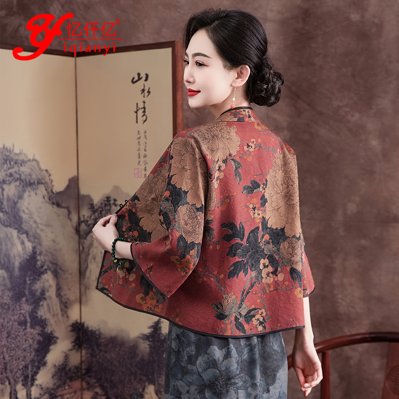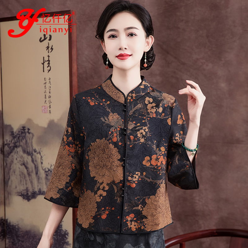 高端香云纱上衣2025春夏新款新中式复古印花立领桑蚕丝真丝短外套