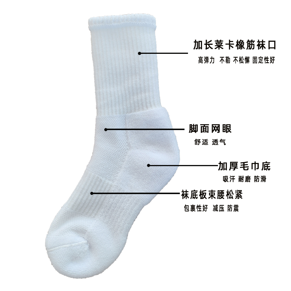 儿童毛巾底白色运动袜棉袜男孩篮球袜毛巾中筒袜女童男童袜子夏季