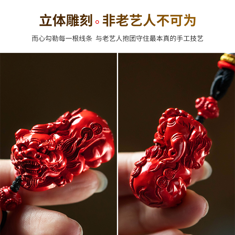 【亏米福利】原矿朱砂貔貅吊坠礼物挂饰细雕工艺品本命年礼物饰品