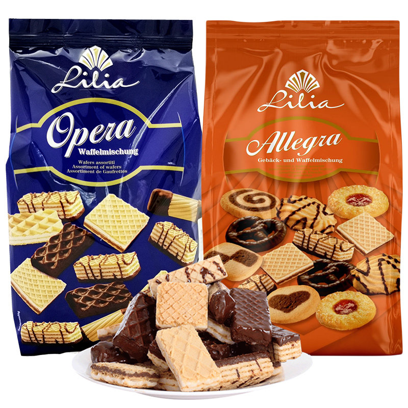 德国进口莱亚精选混装巧克力威化华夫曲奇饼干休闲零食品袋装400g