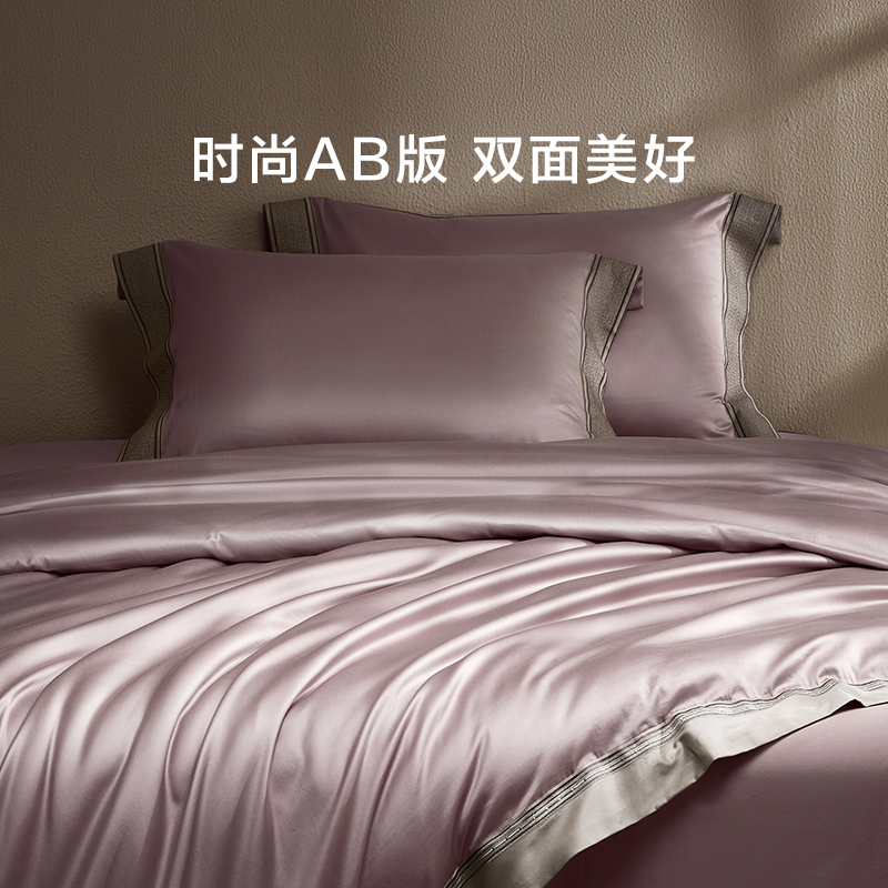 100支全棉贡缎简约纯棉套件罗莱