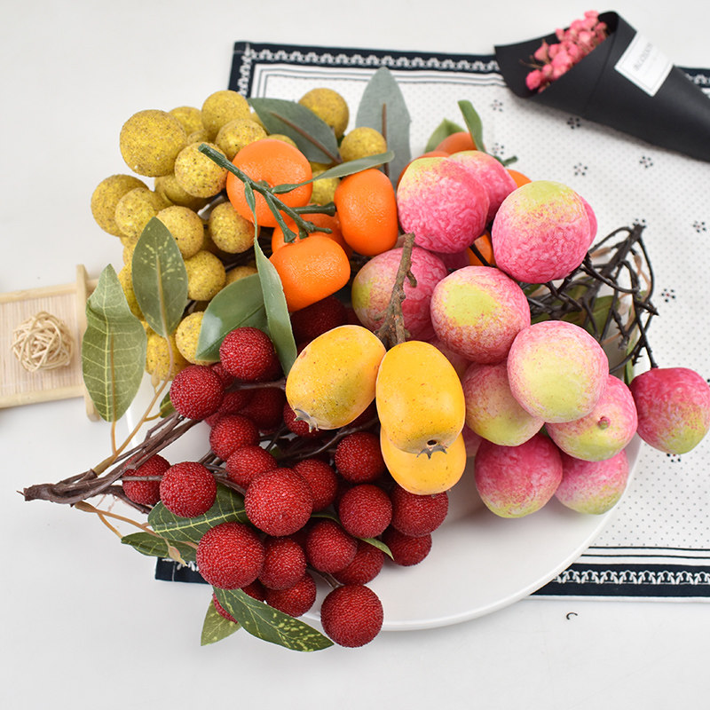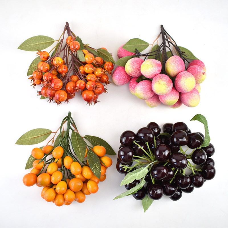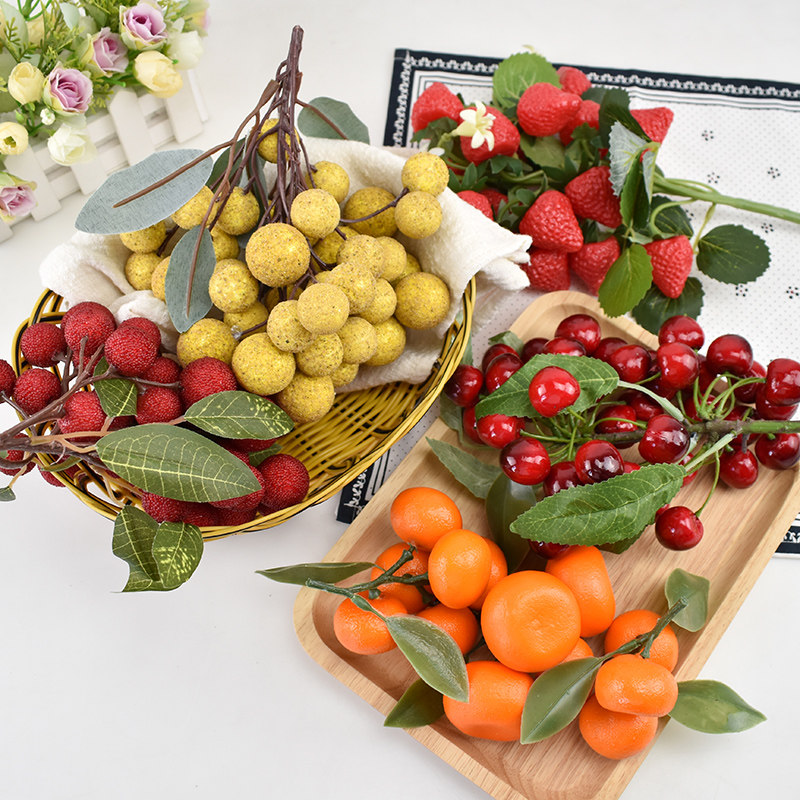 塑料仿真荔枝串模型假龙眼柑橘樱桃水果蔬菜店铺超市装饰摆设道具