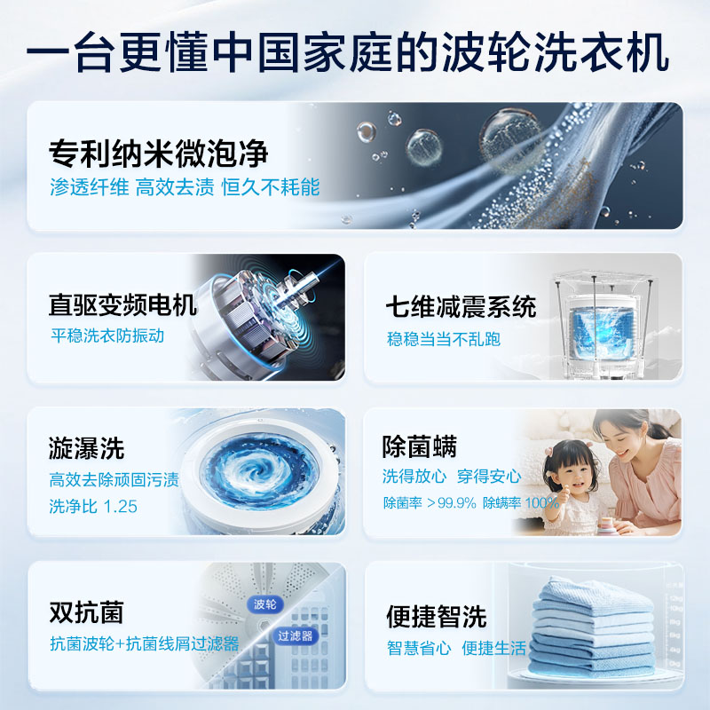 海尔8/10/12公斤超大容量家用全自动直驱变频波轮洗衣机洗脱一体