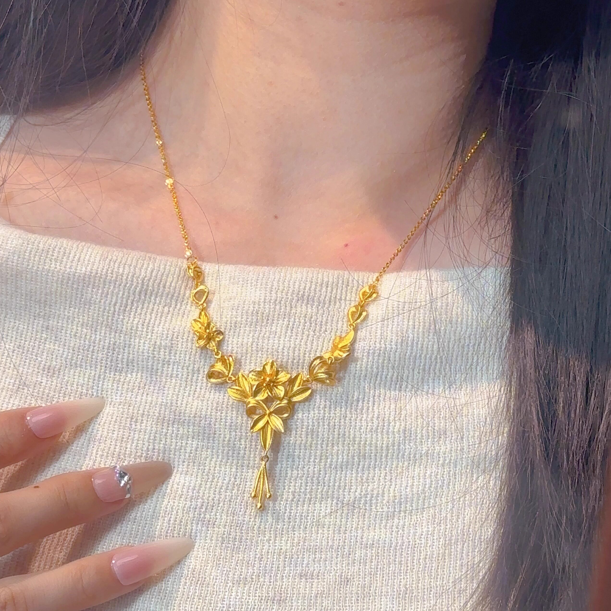 金店同款三生花沙金项链仿真黄金首饰婚嫁花朵锁骨链订婚结婚三金