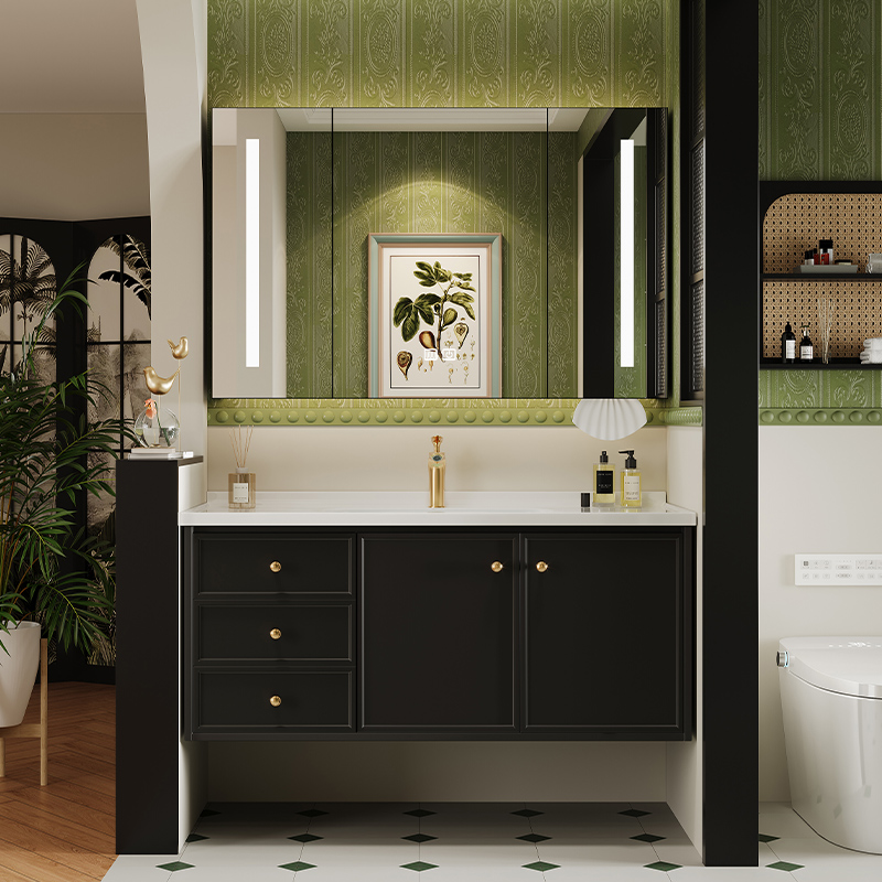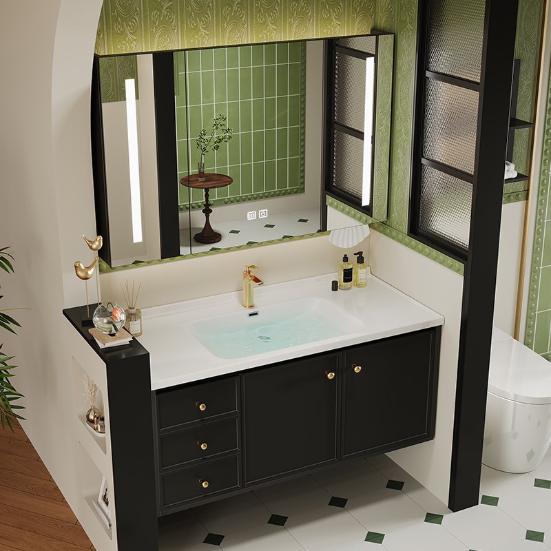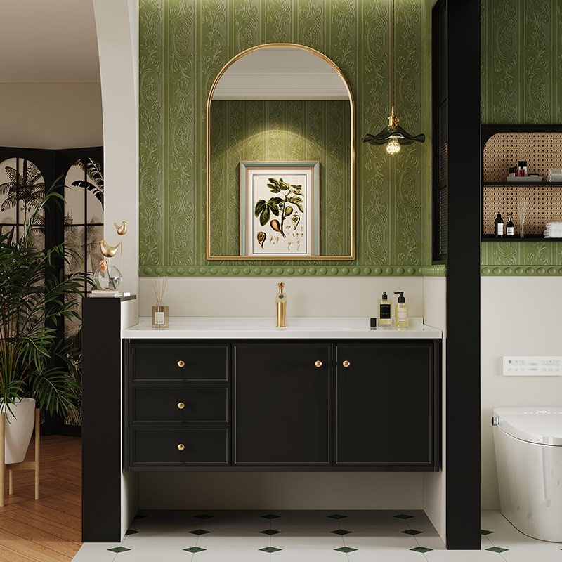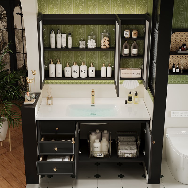 法式浴室柜组合陶瓷一体盆新款中古E风卫生间复古黑洗手盆柜洗漱