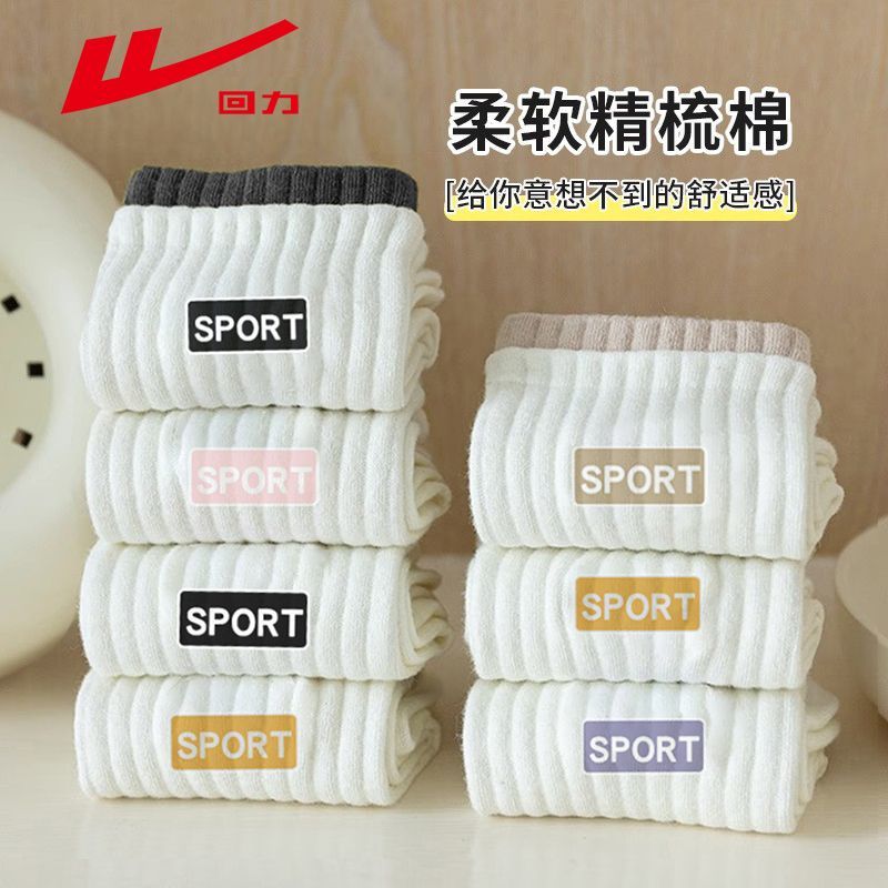 回力100%正品新疆棉袜子女款春秋冬四季款中筒袜7A抗菌白色运动袜