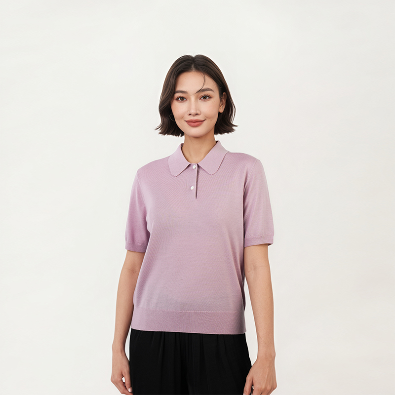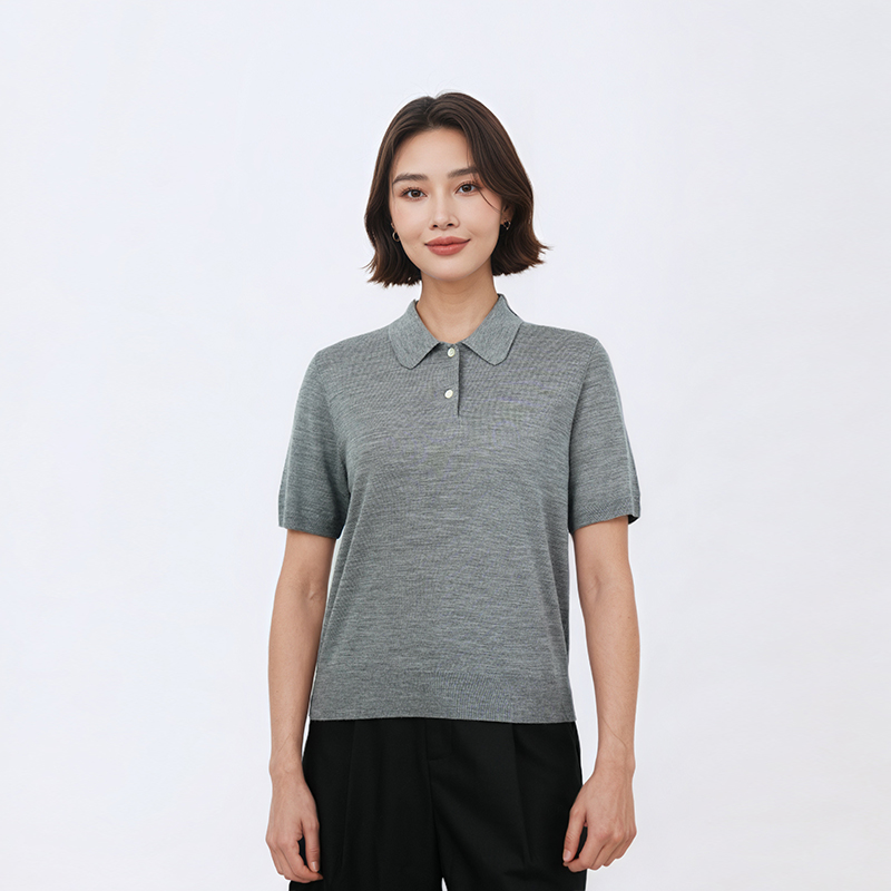 【大潘专享】女士翻领新款纯色针织T恤短袖百搭时髦1N5706
