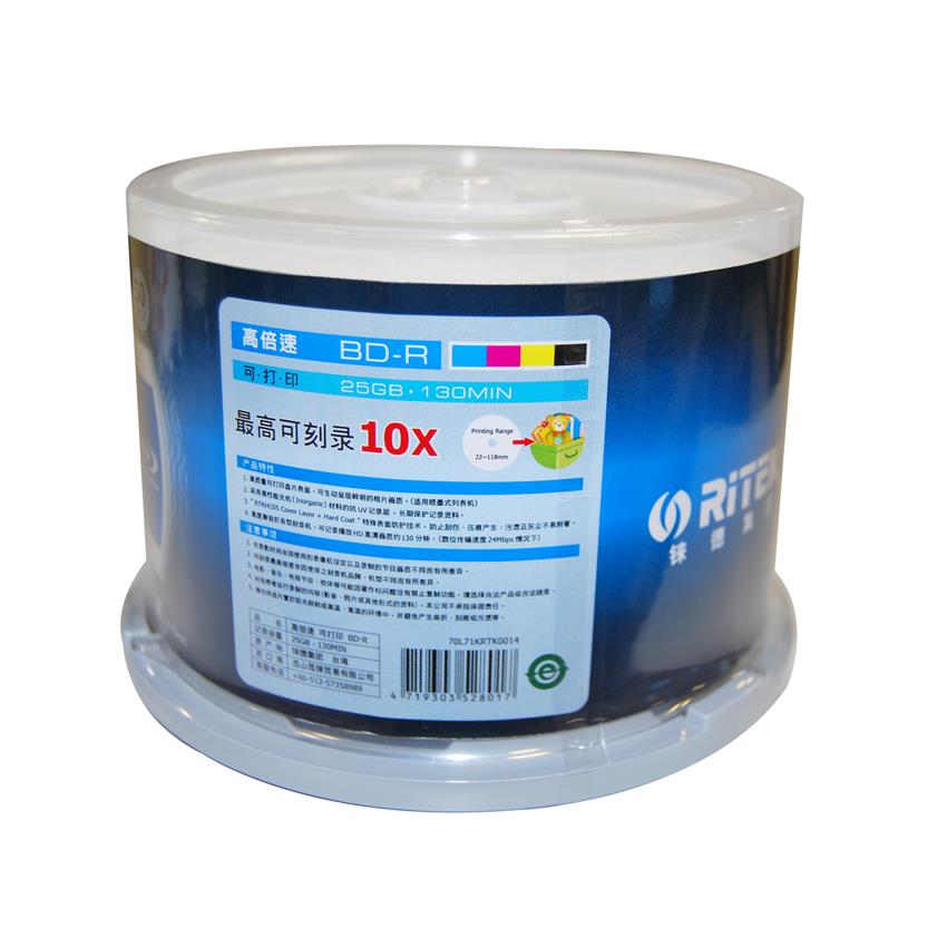 铼德光盘 BD-R 1-10X速 25G 50G蓝光高倍速打印50片桶装刻录 包邮