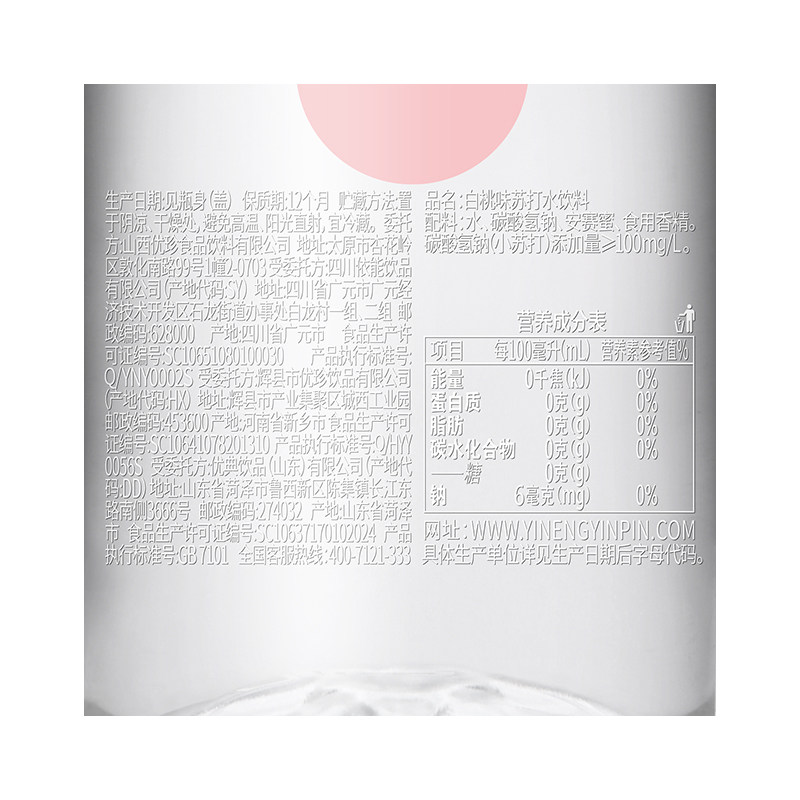 依能白桃味苏打水整箱0糖0脂0卡弱碱性水无糖饮料小瓶饮用水