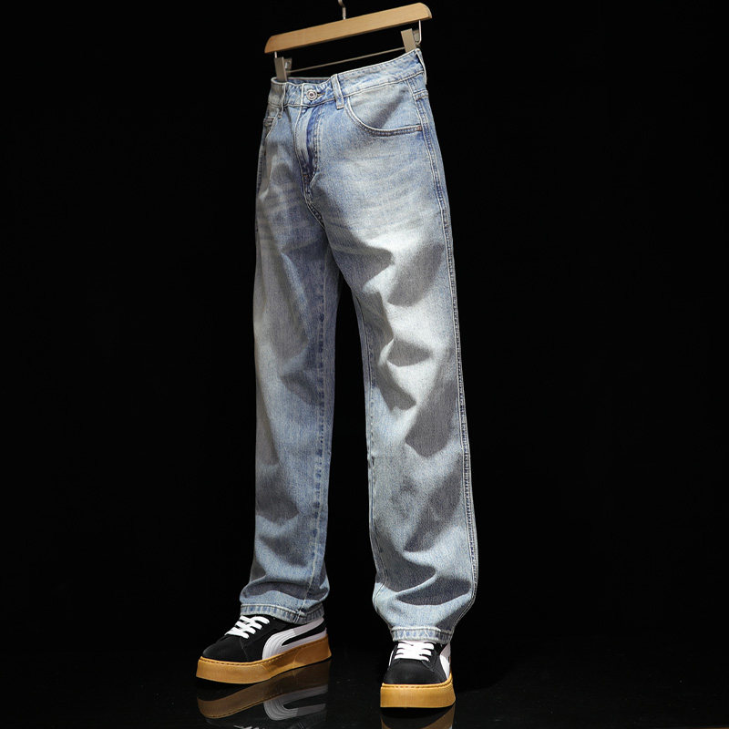 直筒牛仔裤男夏季薄款微弹长裤潮流男士胖哥大码宽松修身型休闲裤