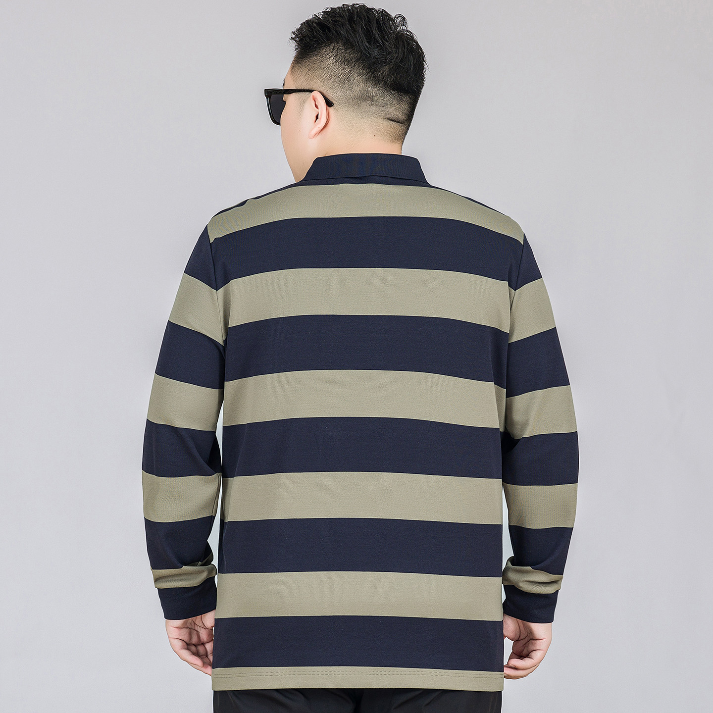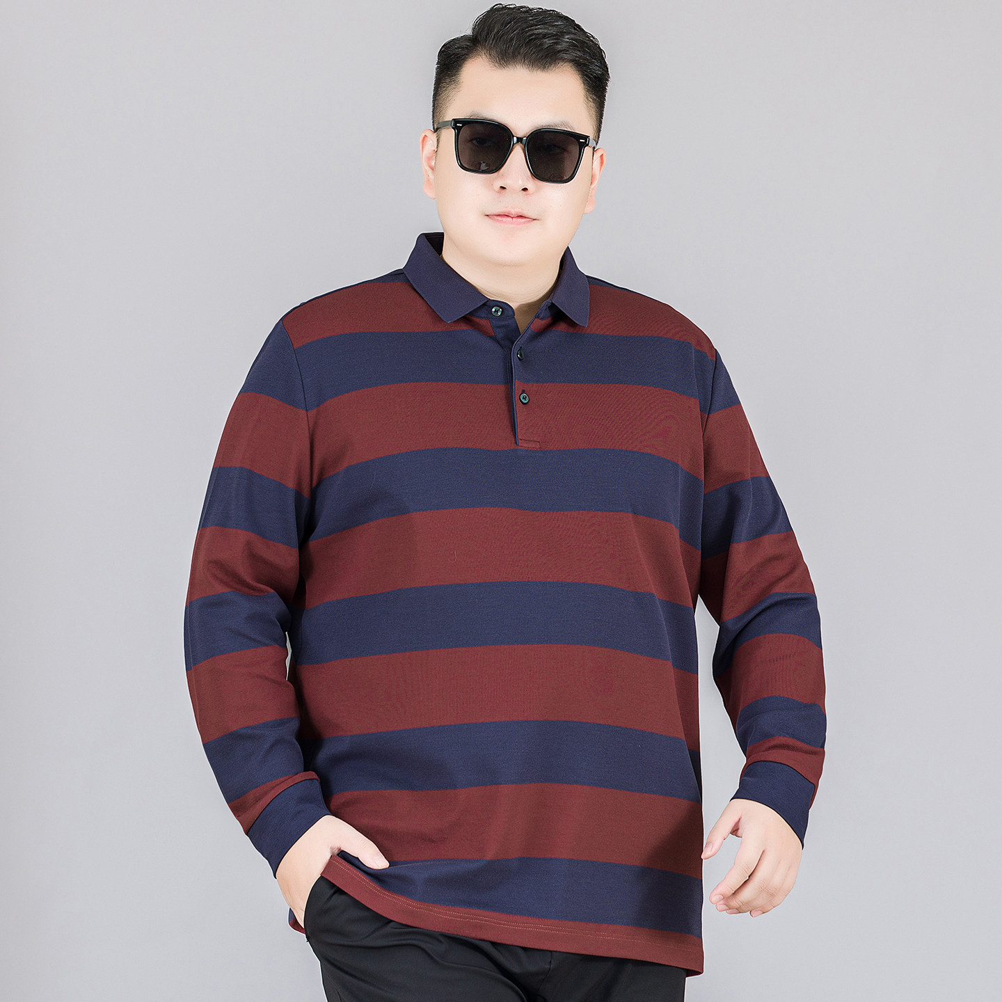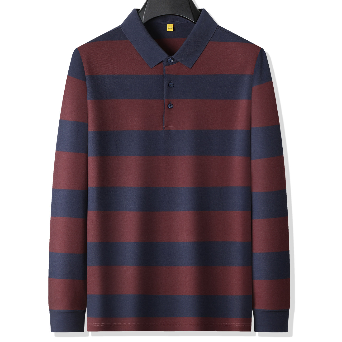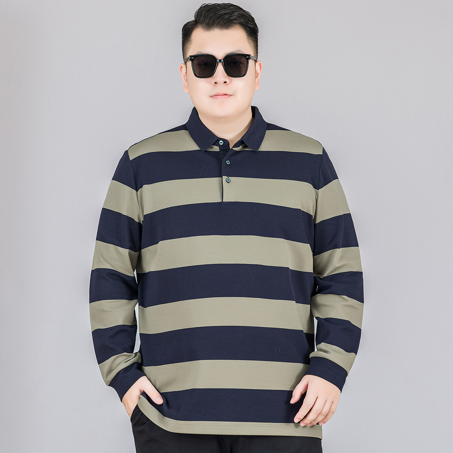 时尚纯棉长袖polo衫男加大码上衣肥佬休闲秋装条纹翻领体恤打底衫