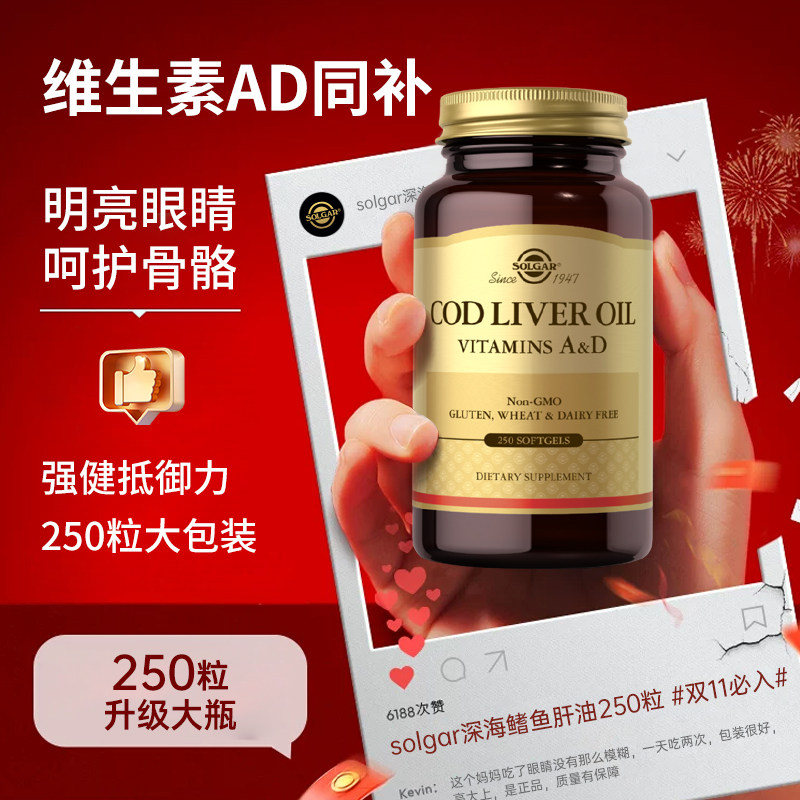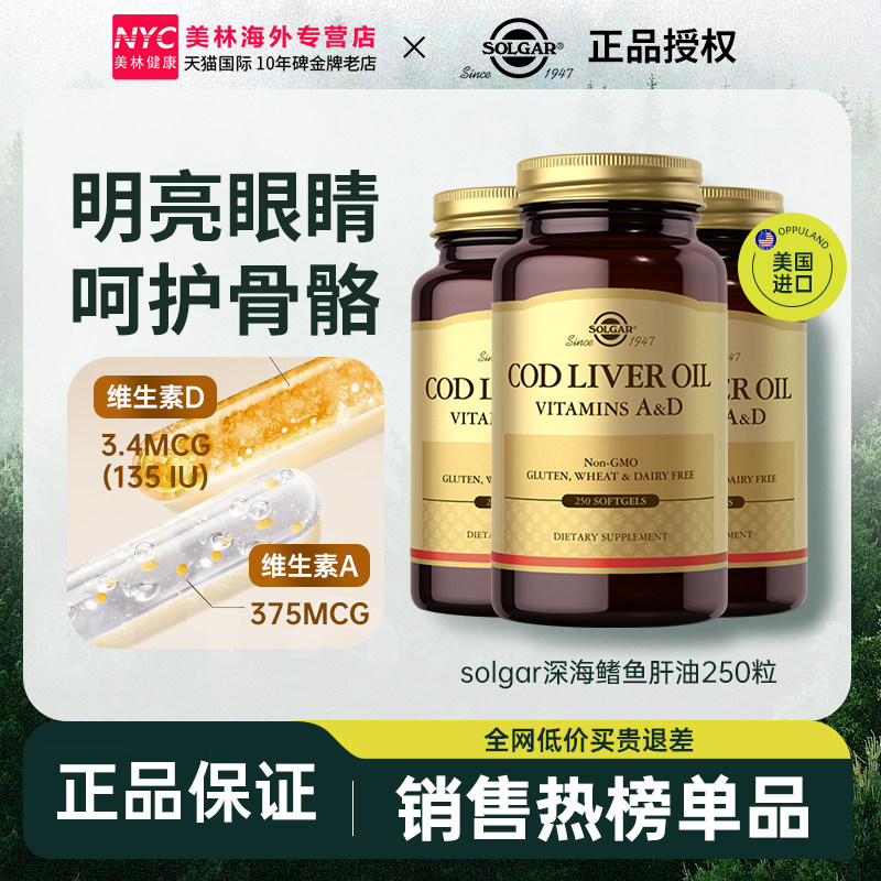 美国进口深海鳕鱼肝油护眼维生素AD软胶囊鱼干油成人孕妇中老年人