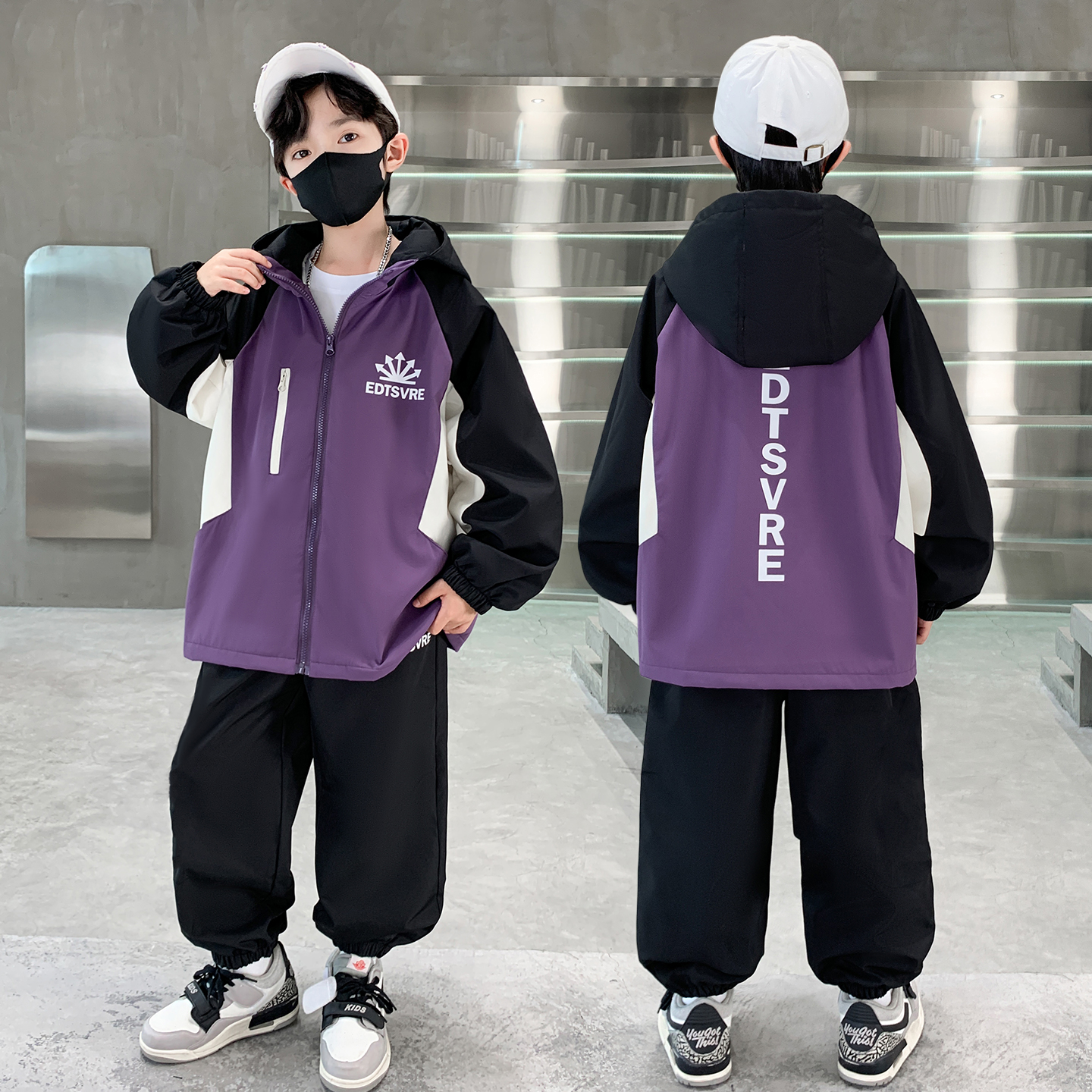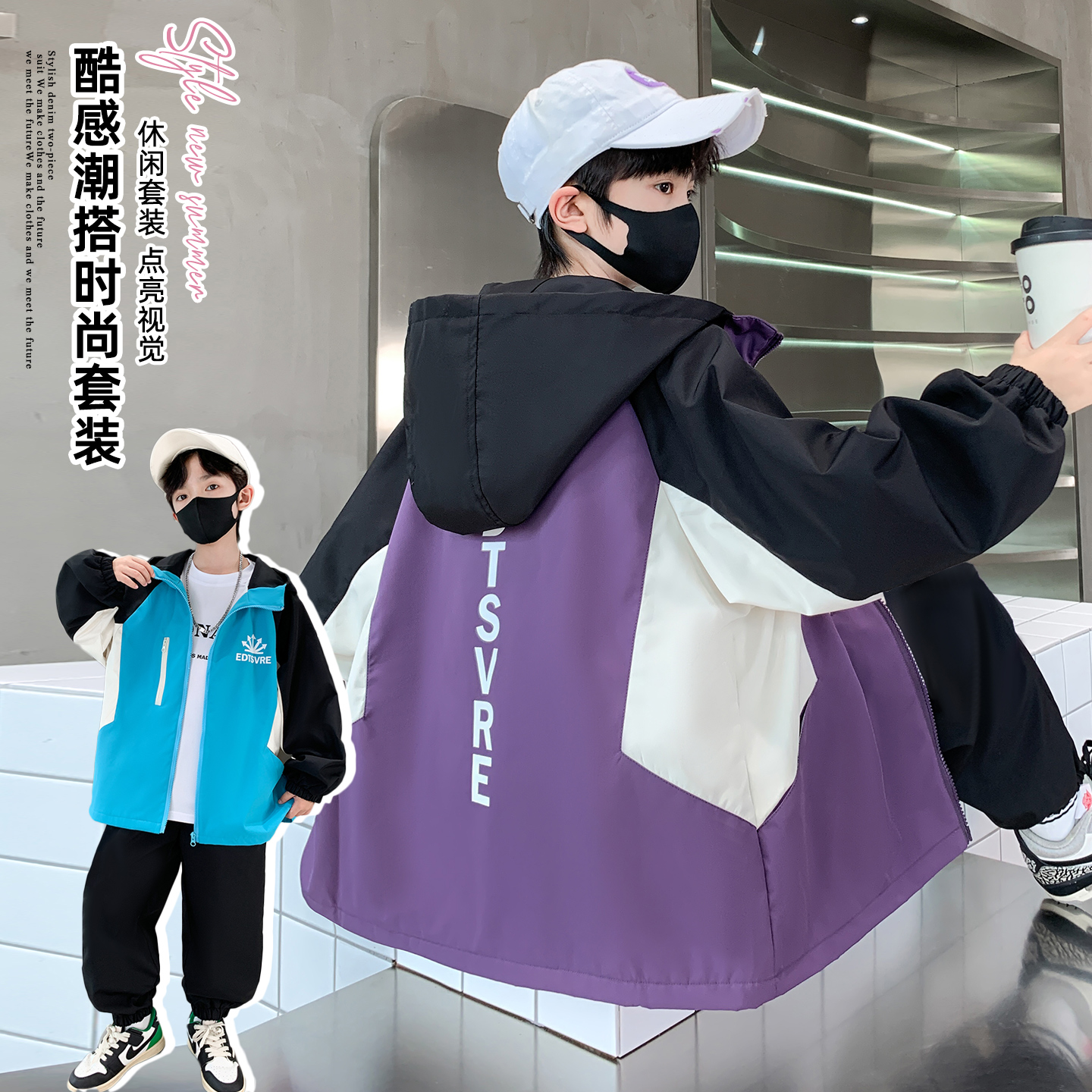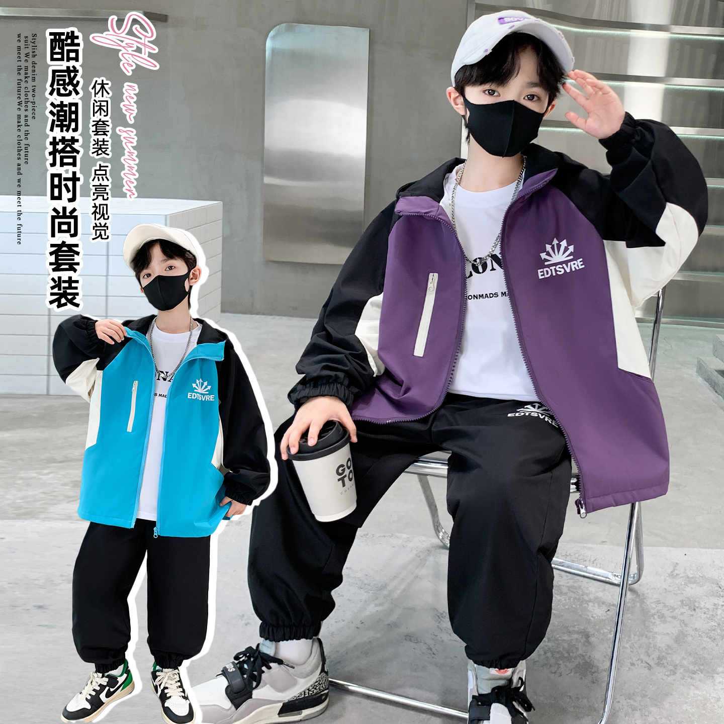 男童套装2025新款春秋中大童户外运动套装帅气炸街上衣裤子两件套