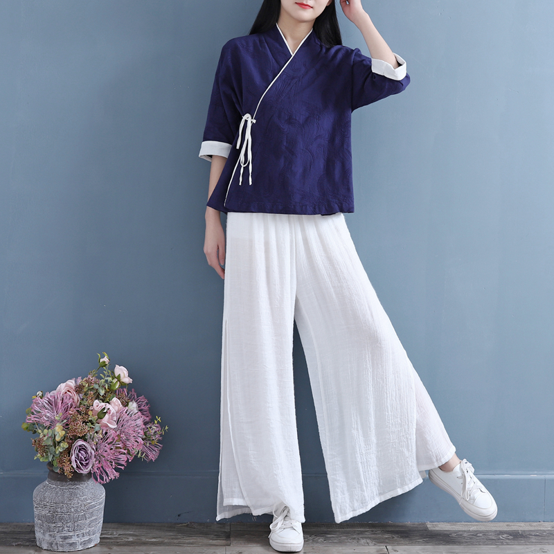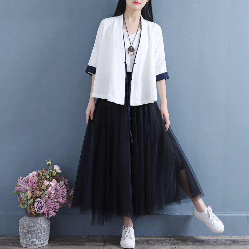 中国风复古文艺夏季棉麻七分袖小开衫汉服棉麻女装小外套上衣女
