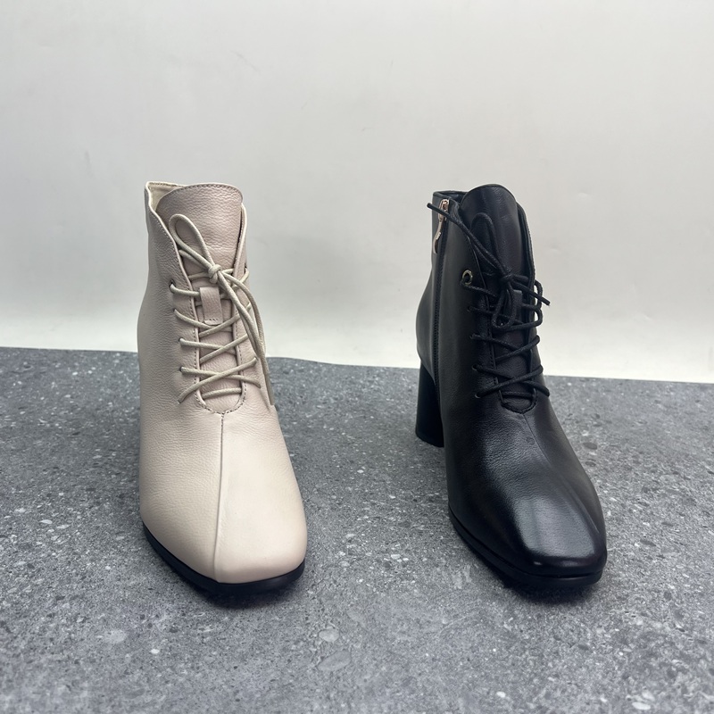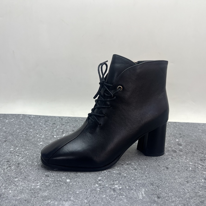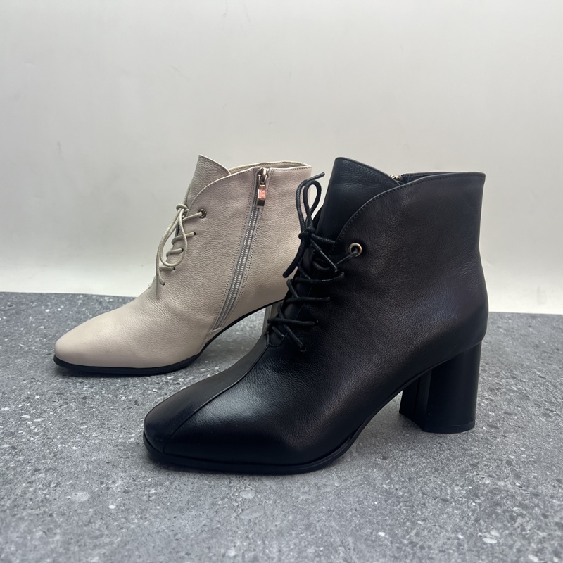 2024断码真皮秋冬新款女鞋高跟短靴工厂时尚牛皮拉链舒适女靴子