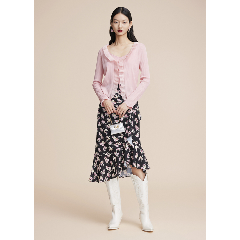 可可尼COCOON商场同款2025秋季新款度假风裙子浪漫碎花鱼尾半身裙
