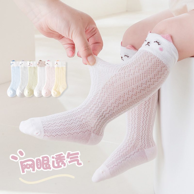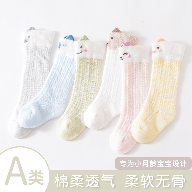 婴儿袜子春夏季薄款新生儿宝宝中筒袜男女小童松口无骨透气网眼袜