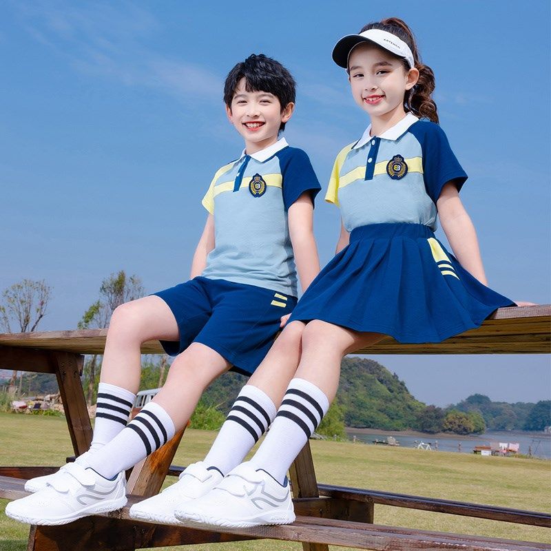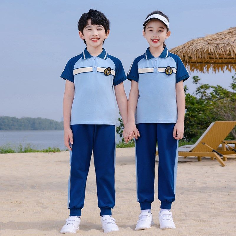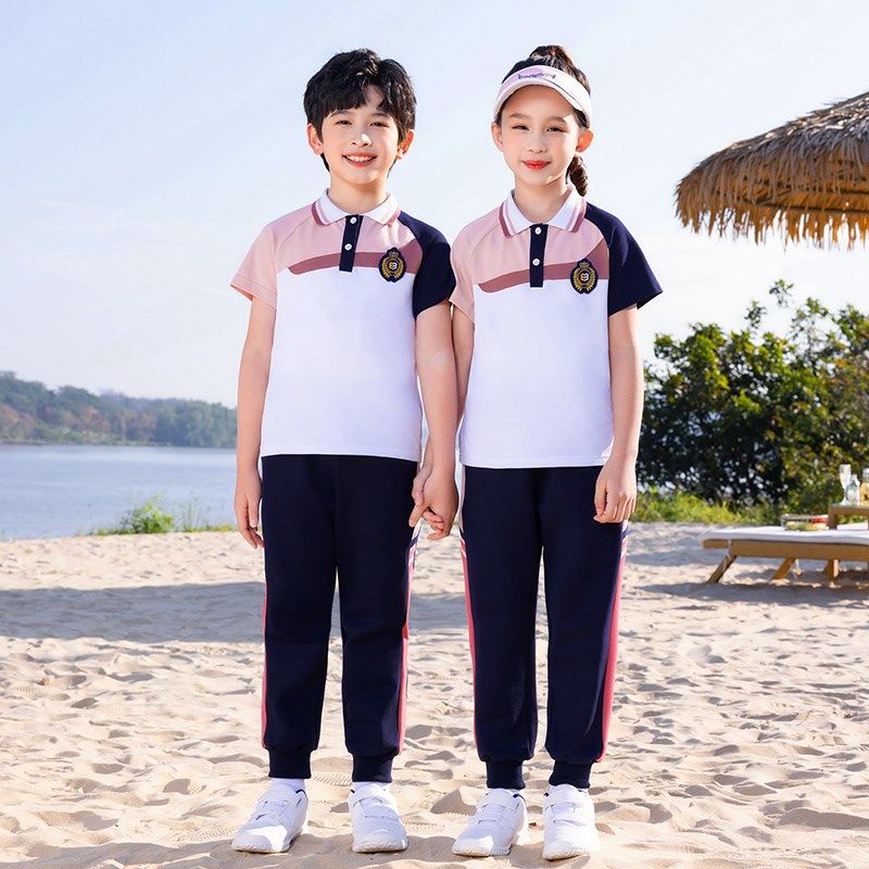 紫色学院风夏季新款纯棉校服套装小学生男女童班服演出服幼儿园服