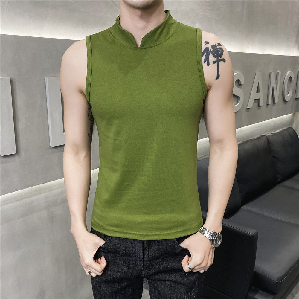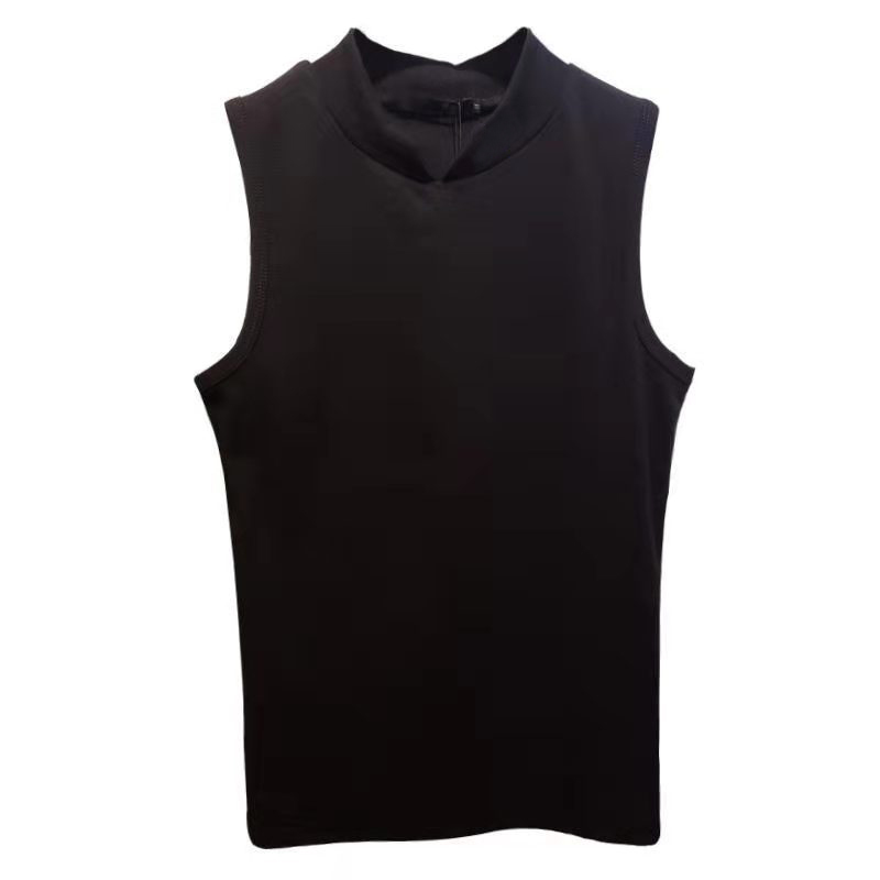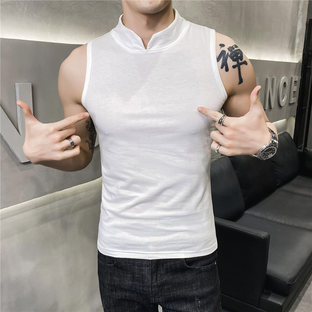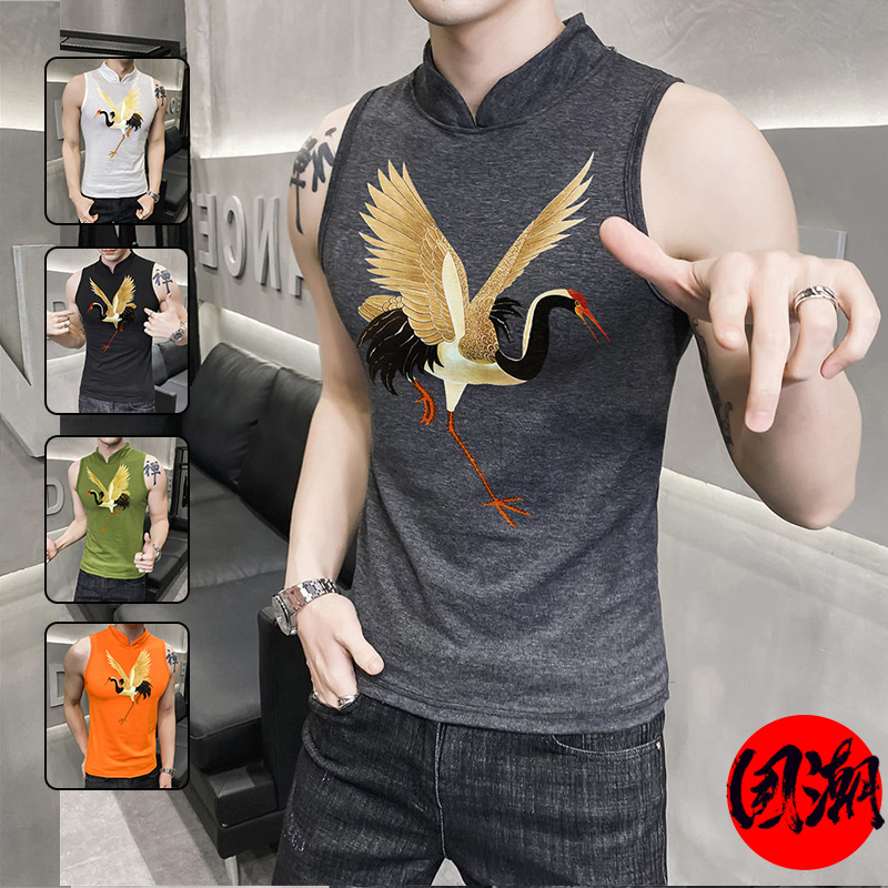 半高领紧身短袖t恤男夏季开口背心无袖健身显瘦上衣印花飞鹤衫潮