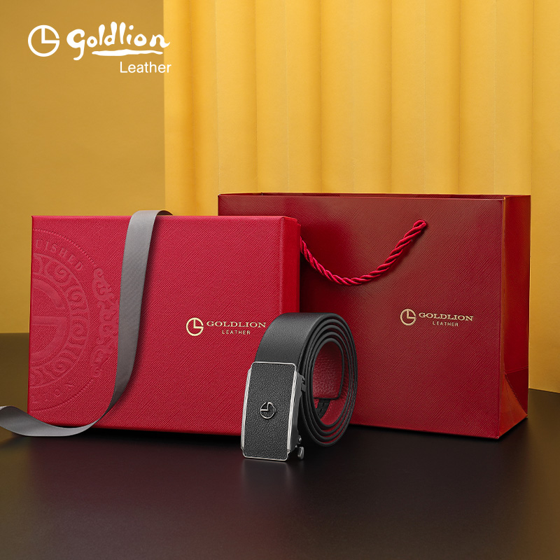【不锈钢】金利来皮带男真皮本命年属蛇红腰带腰封自动扣牛皮裤带
