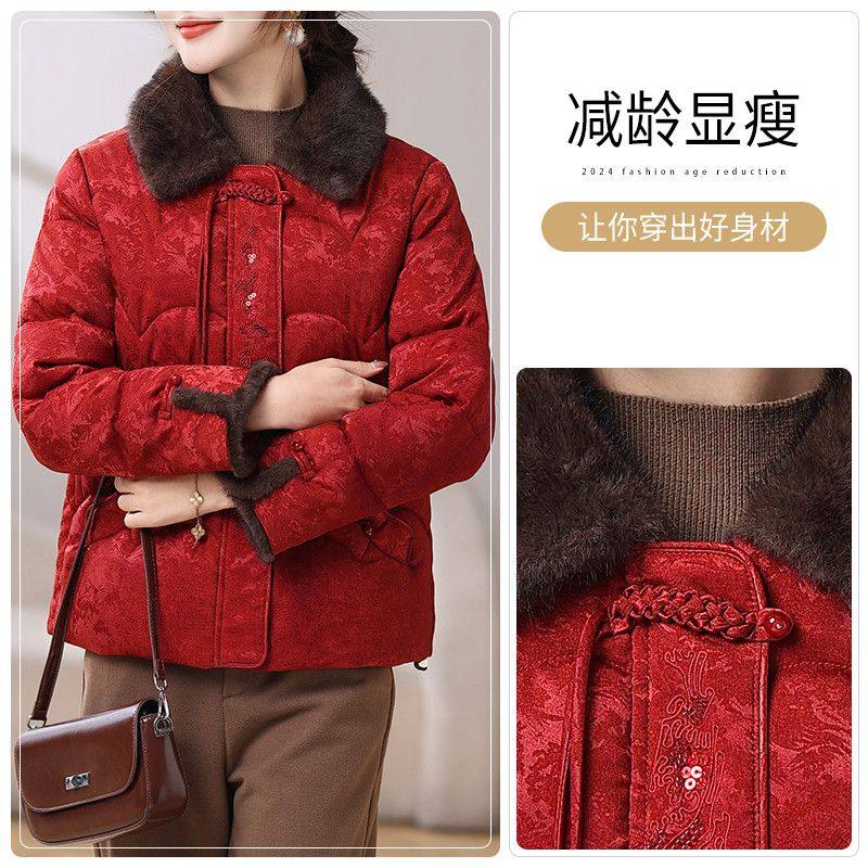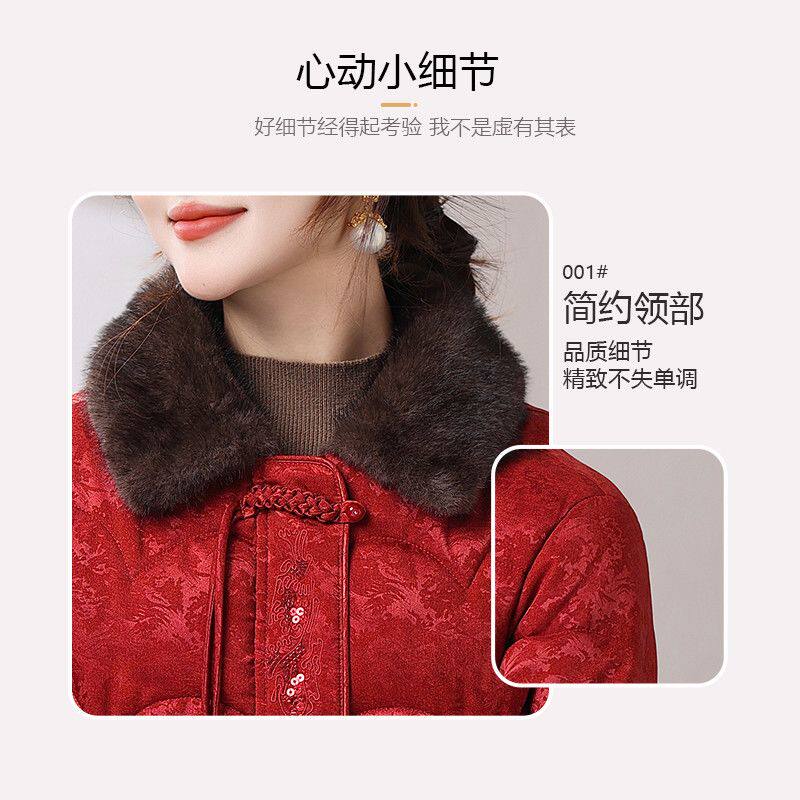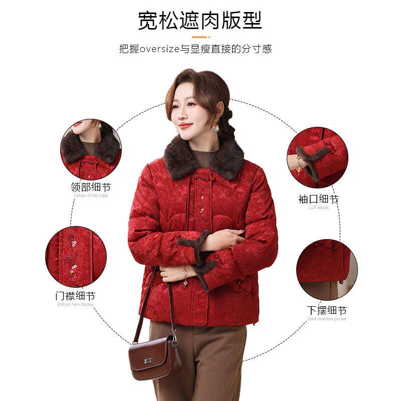 妍影新年红色冬装高贵保暖棉袄毛领女外套