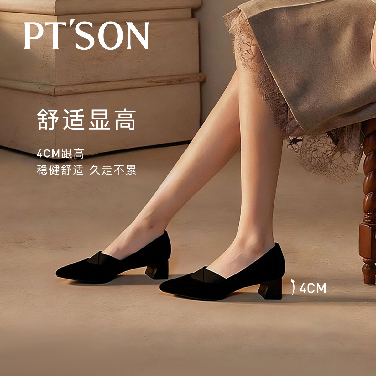 百田森商场同款2026巨好看小皮鞋高跟深口单鞋不累脚单鞋女真皮