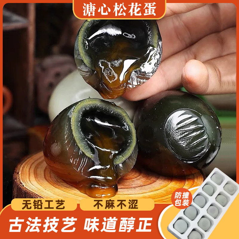 松花皮蛋大别山农家散养土鸭蛋溏心新鲜不麻不涩无铅工艺特产皮蛋
