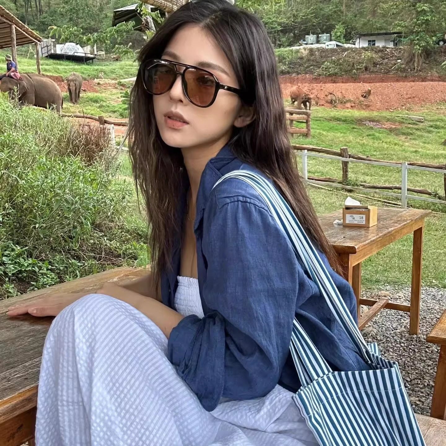2025新款茶色双梁墨镜女飞行员蛤蟆镜经典百搭高级感太阳眼镜大脸