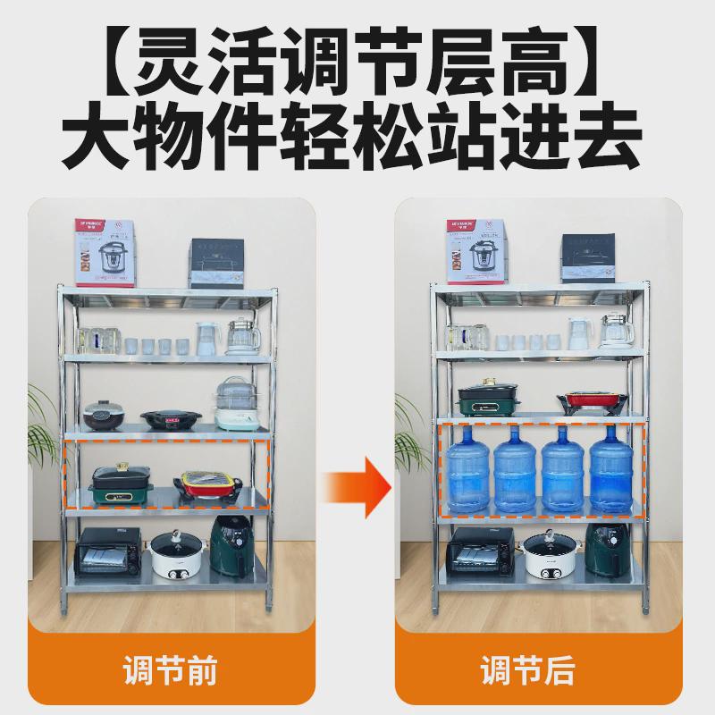 不锈钢厨房置物架落地多功能烤箱家用收纳锅微波炉储物货架加厚