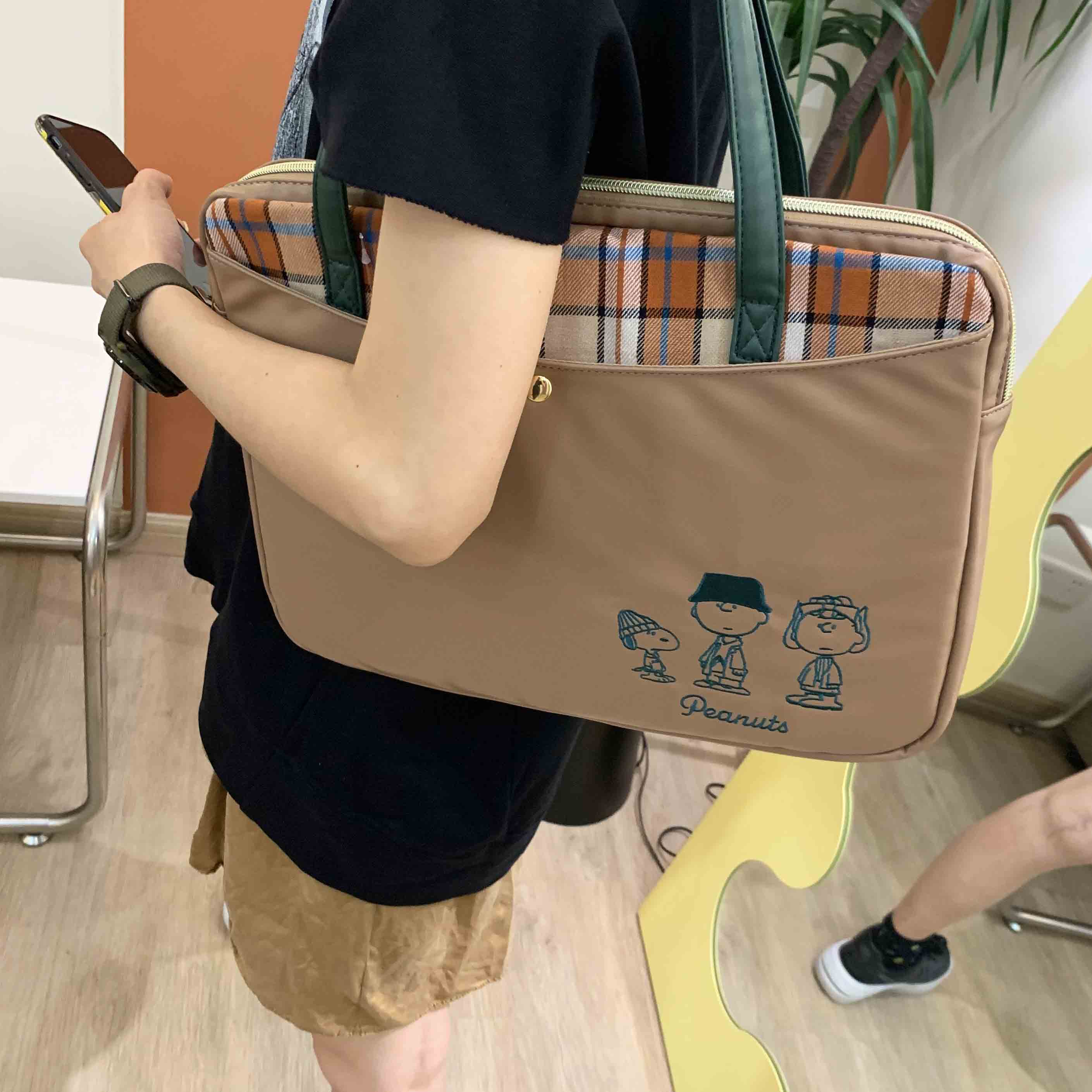 TEETH童年复古刺绣史努比电脑包14寸2023新款日系卡通单肩手提袋