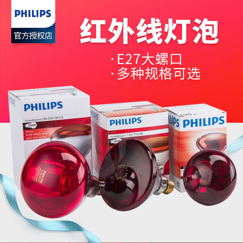 飞利浦进口远红外线灯泡红光烤灯烤灯烤电加热灯泡家用远红外线灯