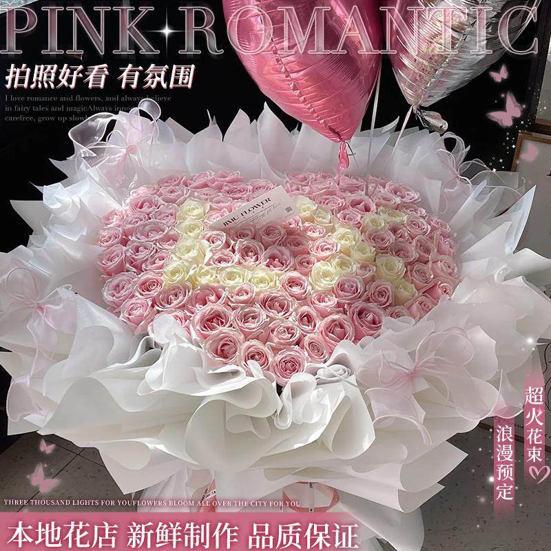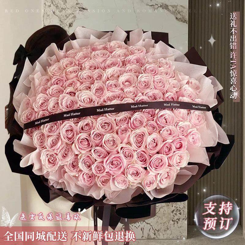 99朵粉玫瑰花束生日鲜花速递同城北京上海杭州求婚配送女友礼物